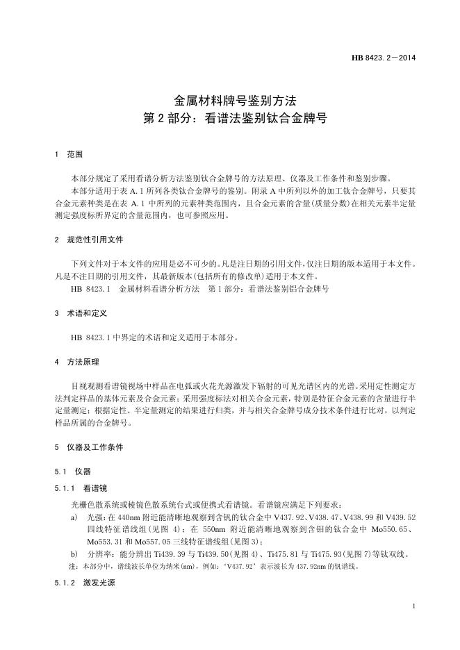 HB 8423.2-2014(2017) 金属材料牌号鉴别方法 第2部分:看谱法鉴别钛合金牌号