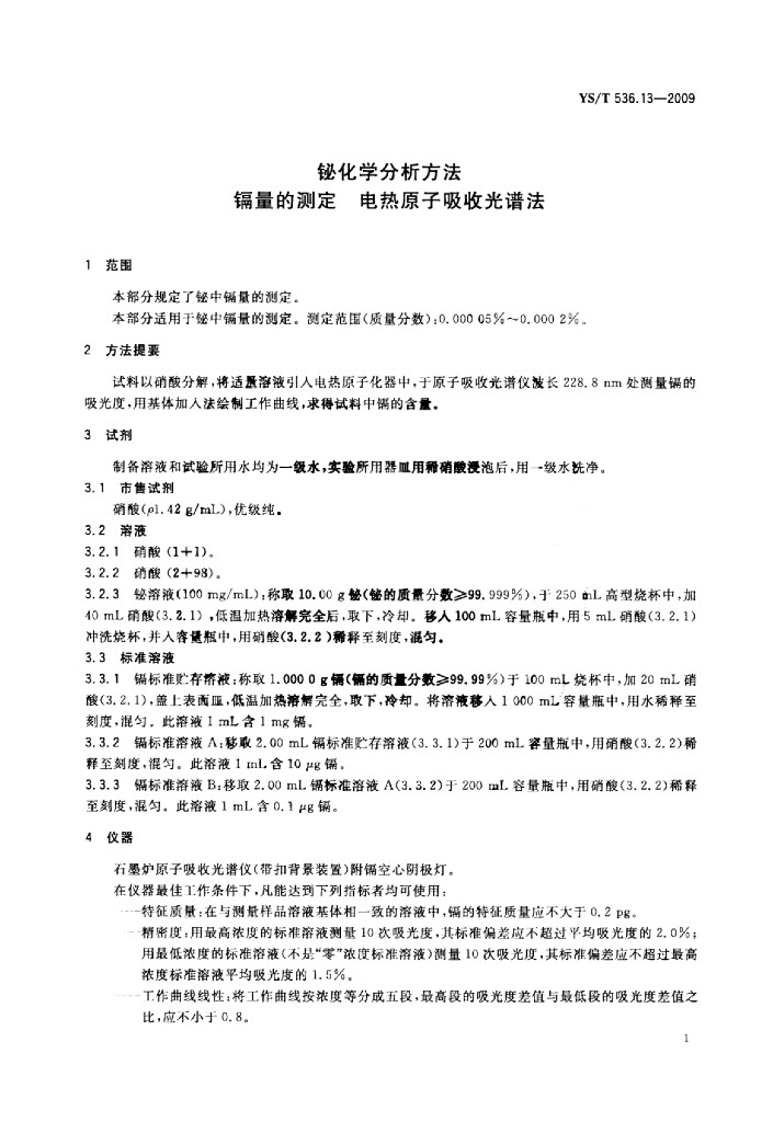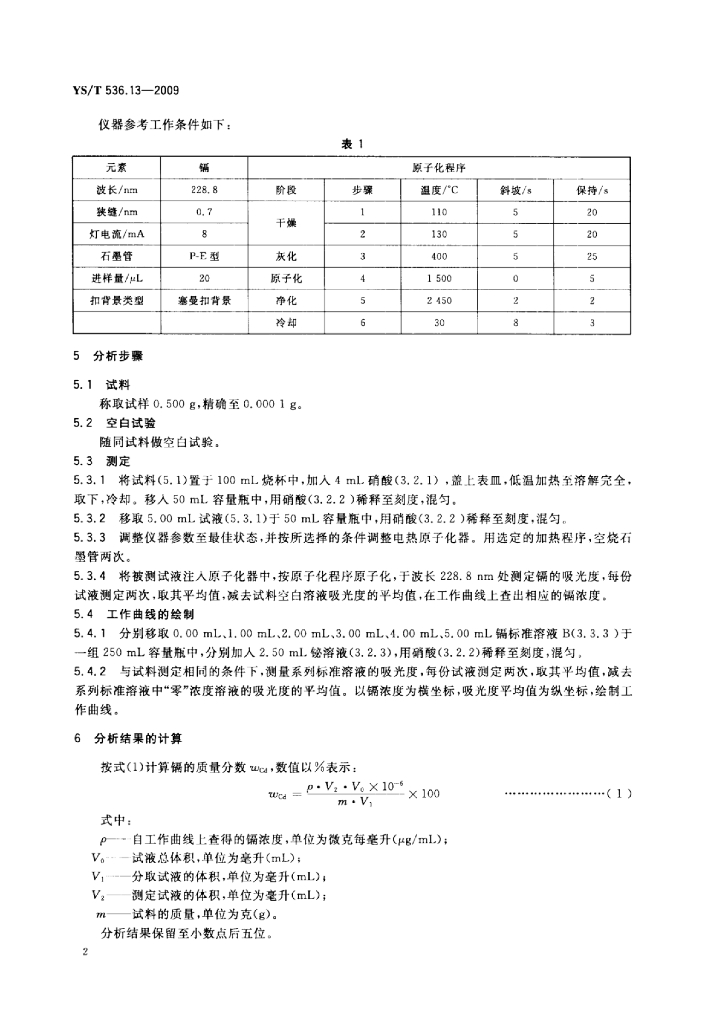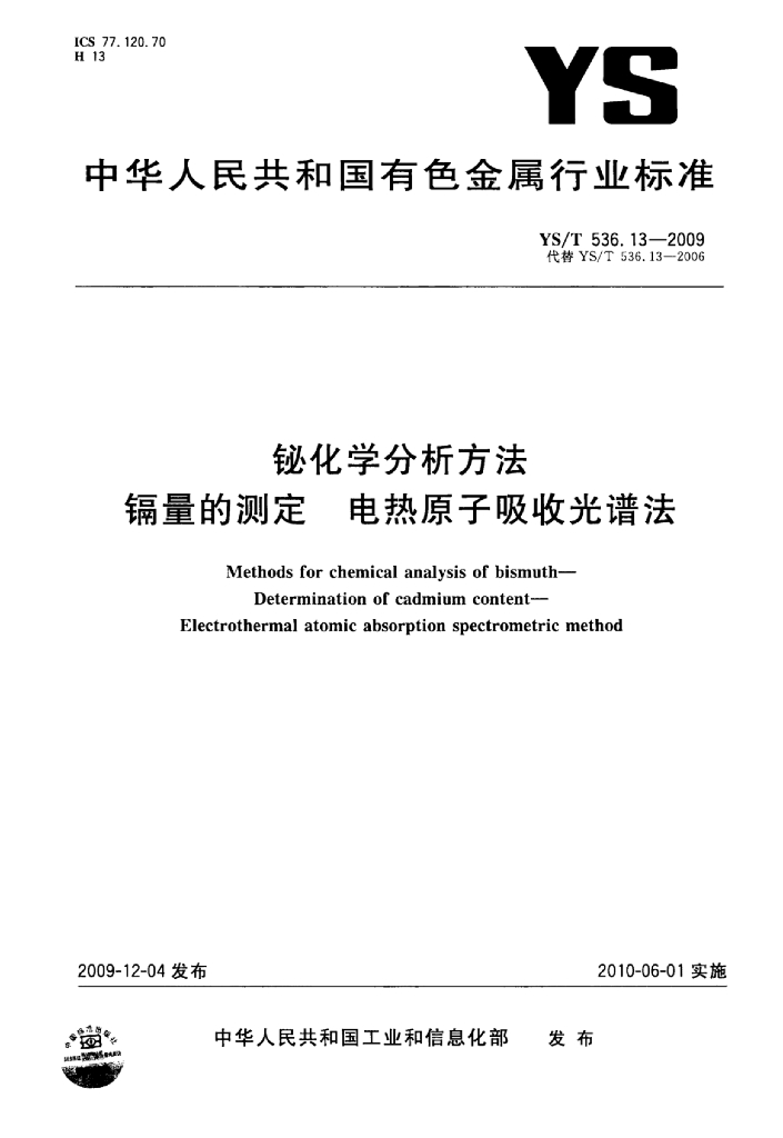 YS/T 536.13-2009 铋化学分析方法镉量的测定电热原子吸收光谱法