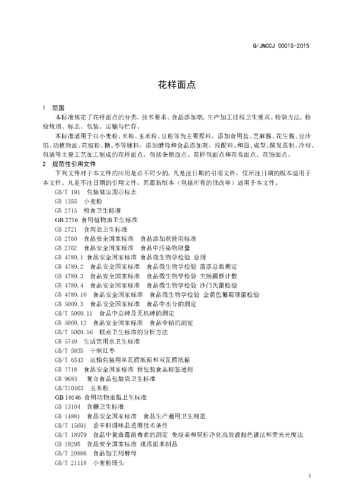 Q/JNCCJ 0001S-2015 济南餐餐健食品有限公司 花样面点