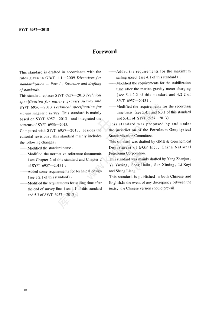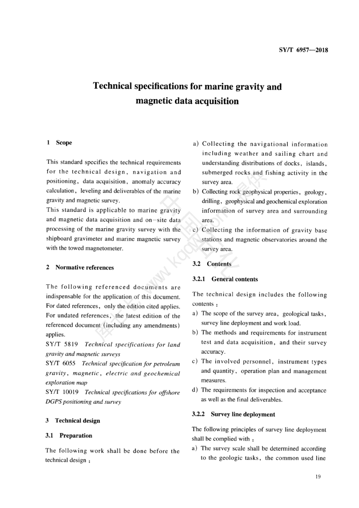 SY/T 6957-2018 海洋重磁勘探数据采集技术规程(英文版)