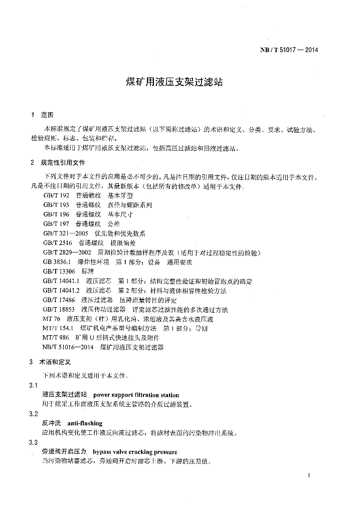 NB/T 51017-2014 煤矿用液压支架过滤站