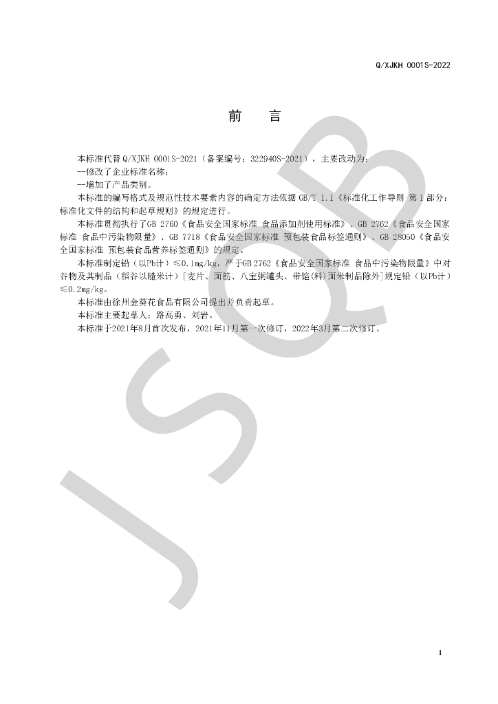 Q/XJKH 0001S-2022 米线和面条(面线)