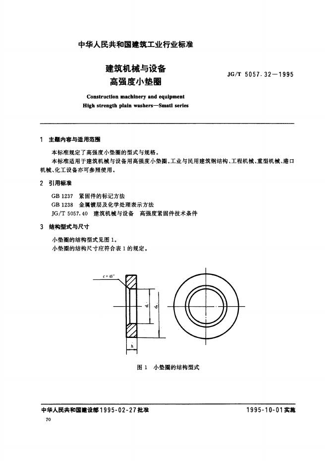 JG/T 5057.32-1995 建筑机械与设备 高强度小垫圈