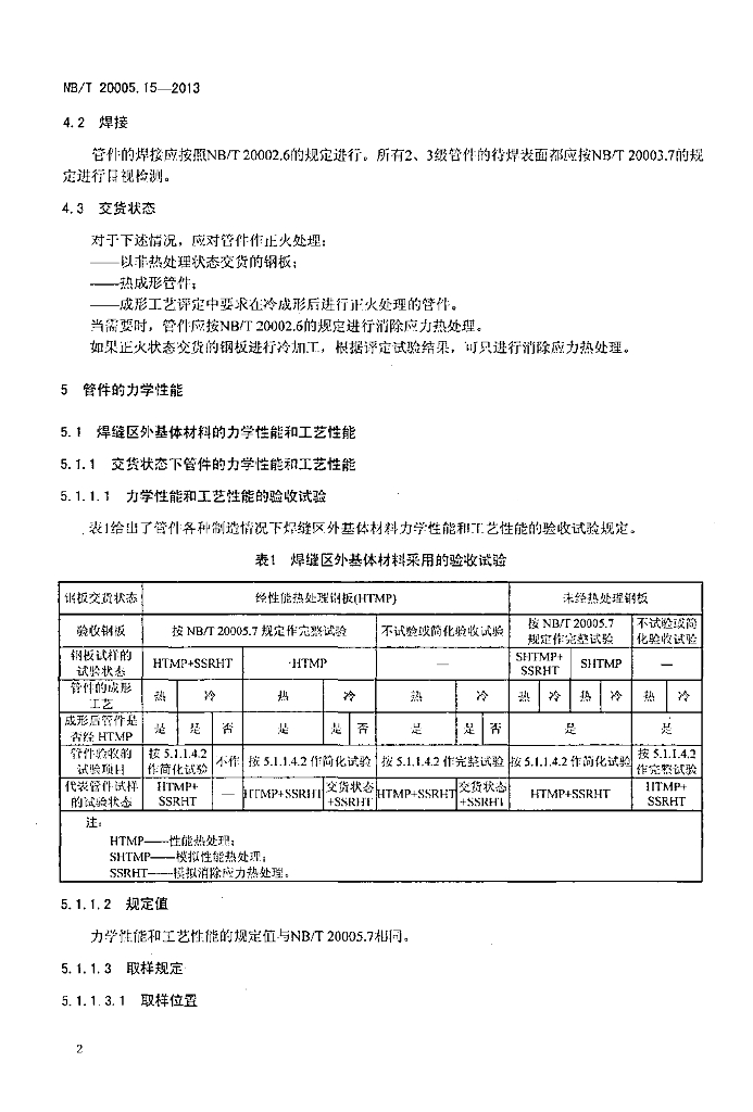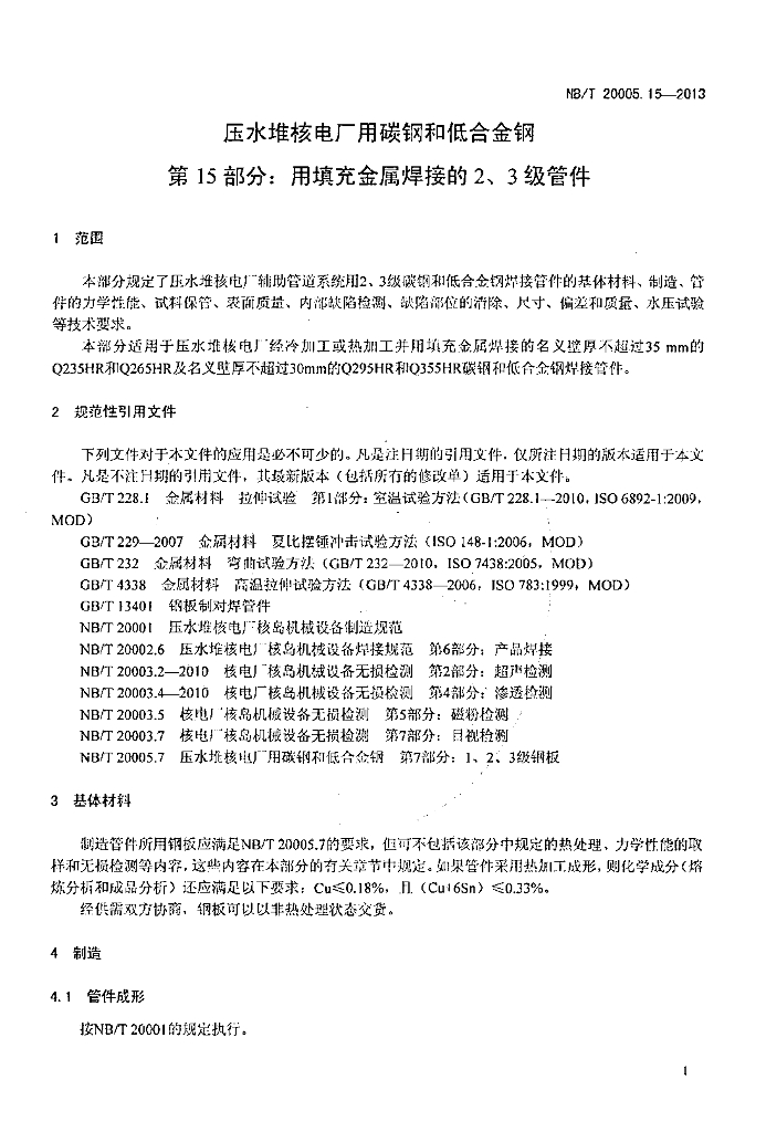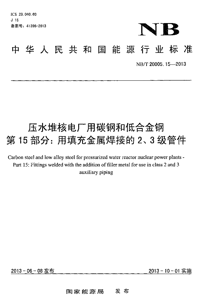 NB/T 20005.15-2013 压水堆核电厂用碳钢和低合金钢 第15部分:用填充金属焊接的2、3级管件