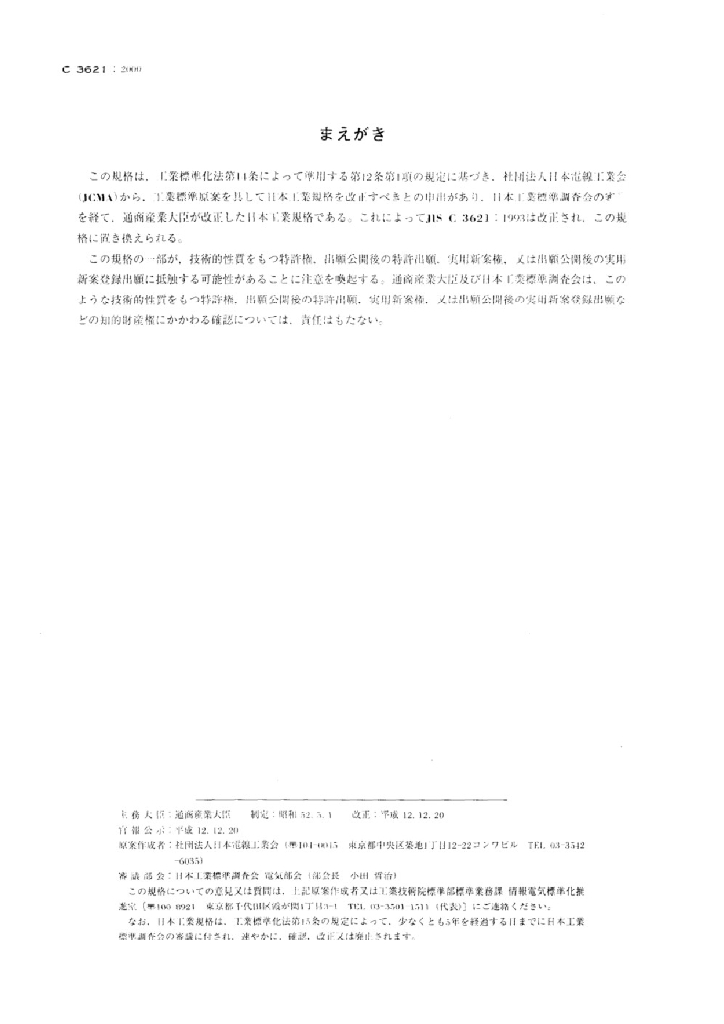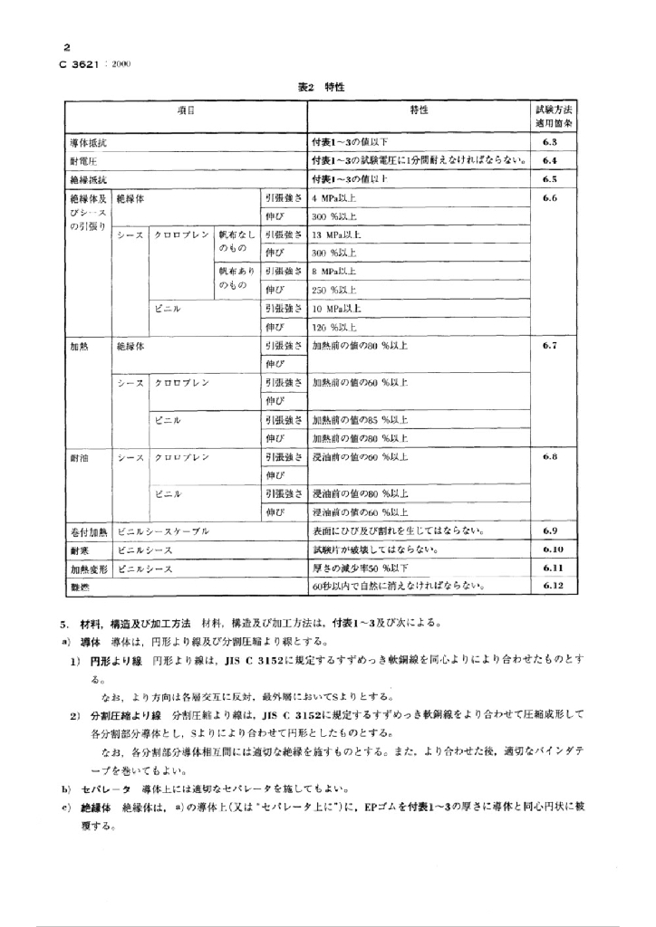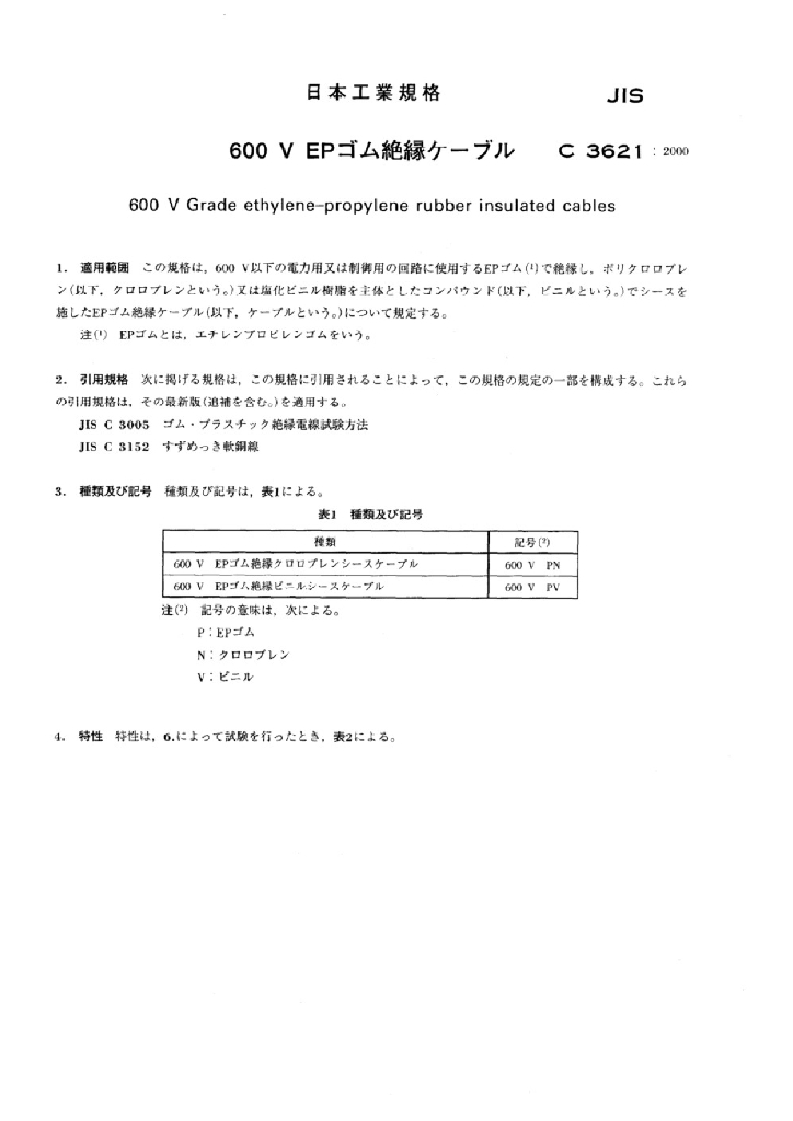 JIS C3621:2000 600V乙丙烯橡胶绝缘电缆