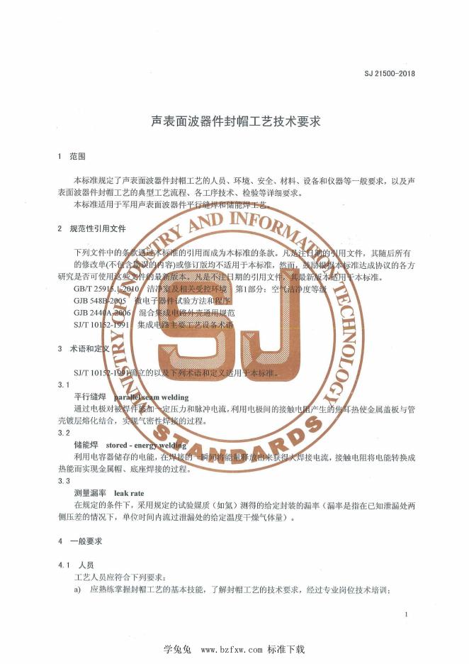 SJ 21500-2018 声表面波器件封帽工艺技术要求