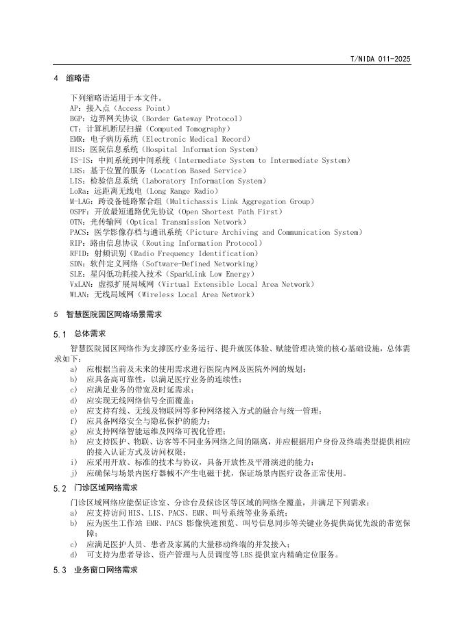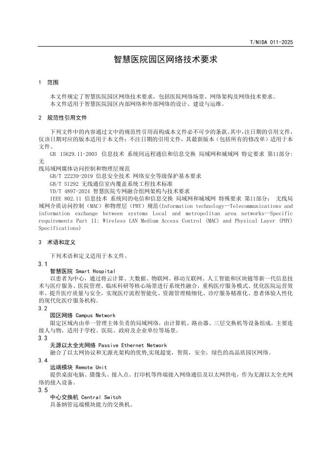 T/NIDA 011-2025 智慧医院园区网络技术要求