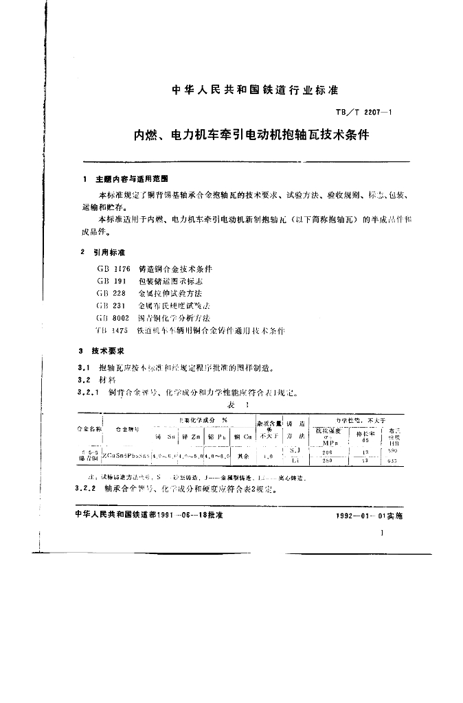 TB/T 2207-1991 内燃、电力机车牵引电动机抱轴瓦技术条件
