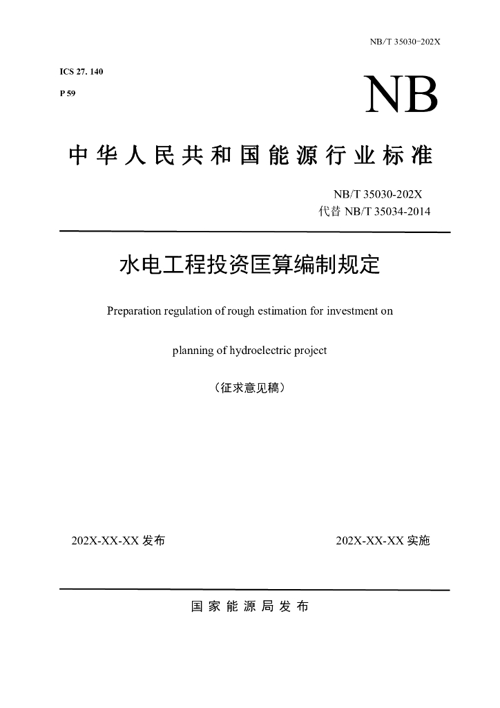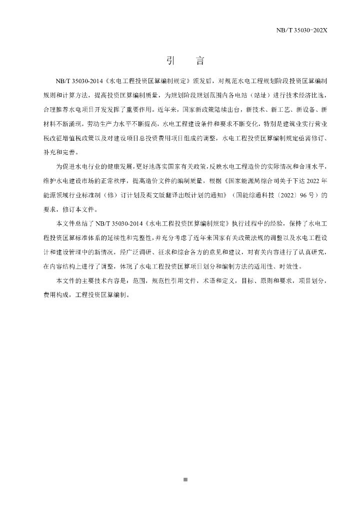 NB/T 35030-202X 水电工程投资匡算编制规定(征求意见稿)