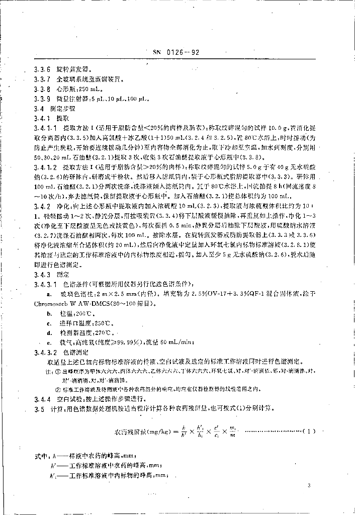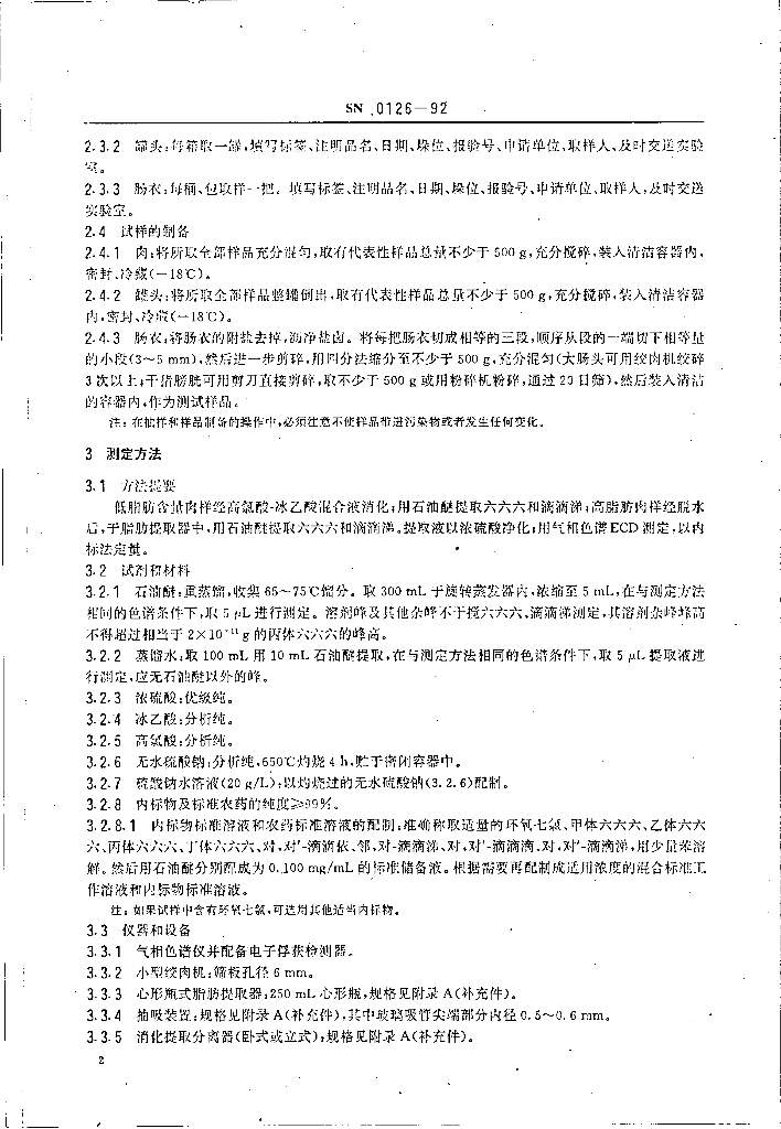 SN 0126-1992 出口肉及肉制品中六六六、滴滴涕残留量检验方法