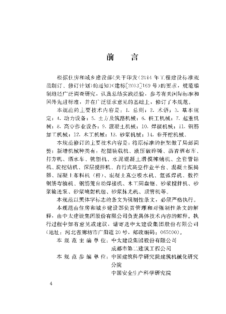 中太建设集团股份有限公司、成都市第二建筑工程公司、中国建筑科学研究院建筑机械化研究分院、中国安全生产科学研究院、河北省建筑科学研究院、海力控股集团有限公司、浙江省东阳第三建筑工程有限公司、南通大学、江苏南通三建集团有限公司、河北工业大学、河北建工集团有限责任公司、石家庄三建建业集团有限公司、石家庄市市政建设总公司、济南城建集团有限公司、北京世纪豪森设计有限公司、中国建设教育协会建设机械职业教育专业委员会、廊坊凯博建设机械科技有限公司、捷尔杰(天津)设备有限公司、特雷克斯(中国)投资有限公司、北京万兴建筑集