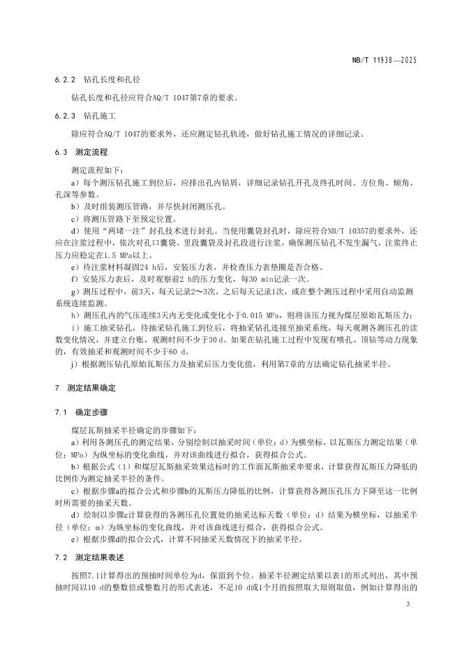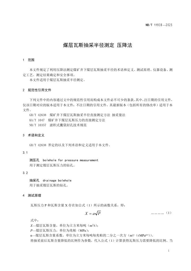 NB/T 11938-2025 煤层瓦斯抽采半径的测定 压降法