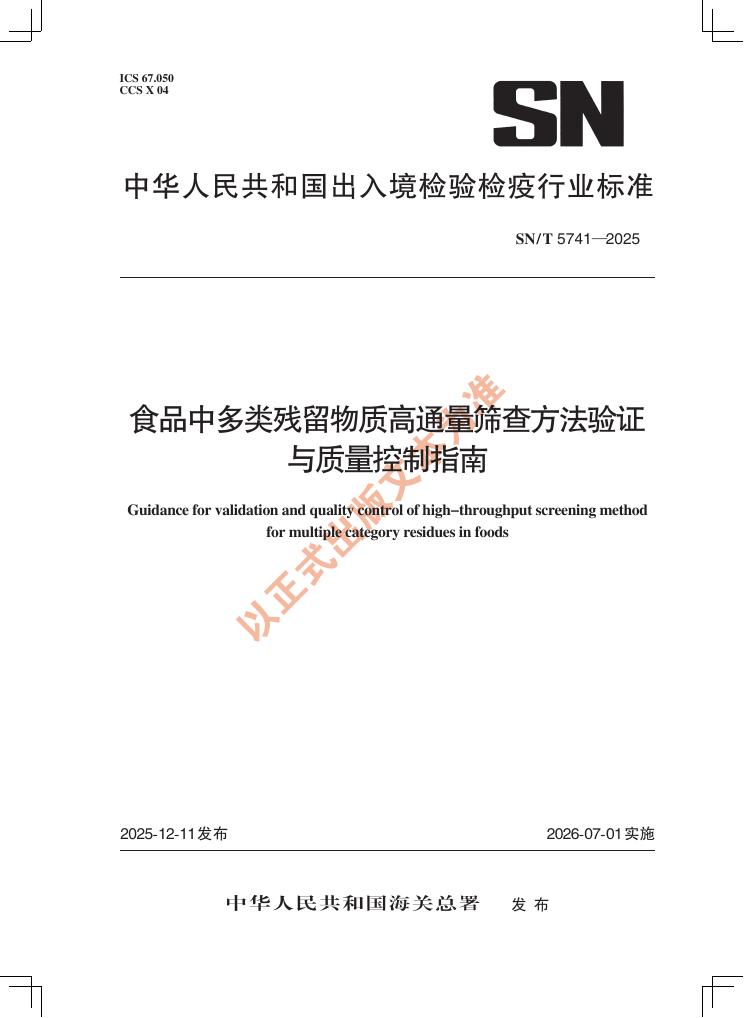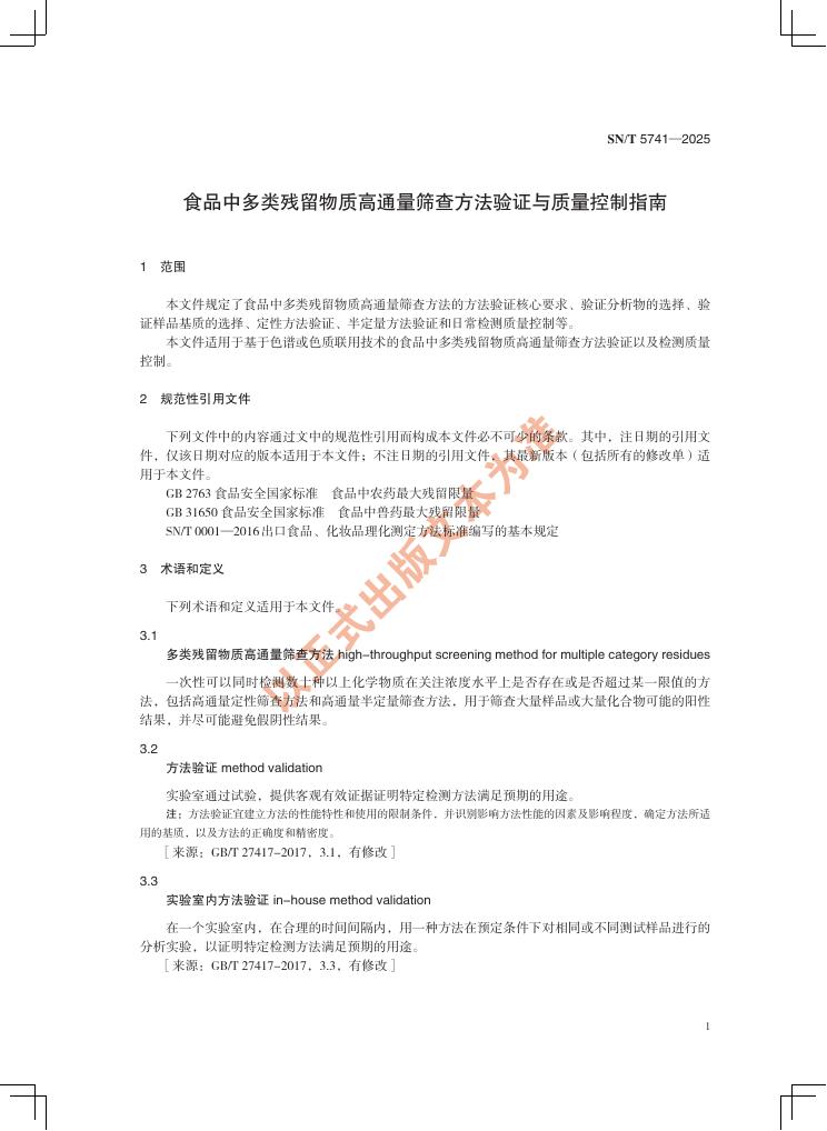SN/T 5741-2025 食品中多类残留物质高通量筛查方法验证与质量控制指南