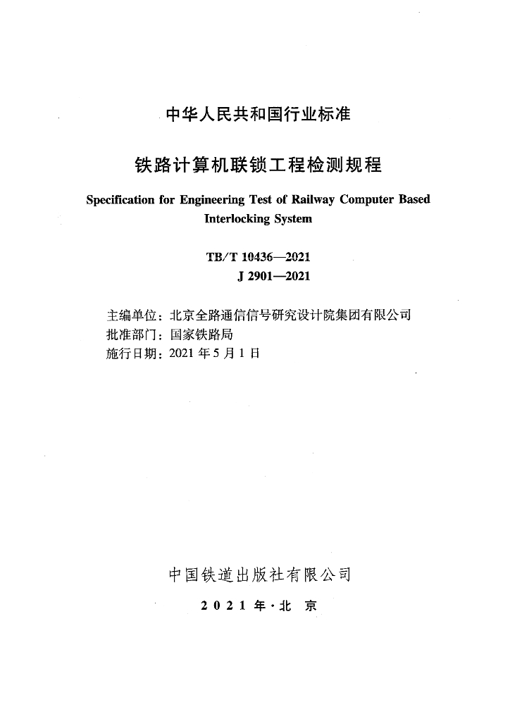 TB/T 10436-2021 铁路计算机联锁工程检测规程