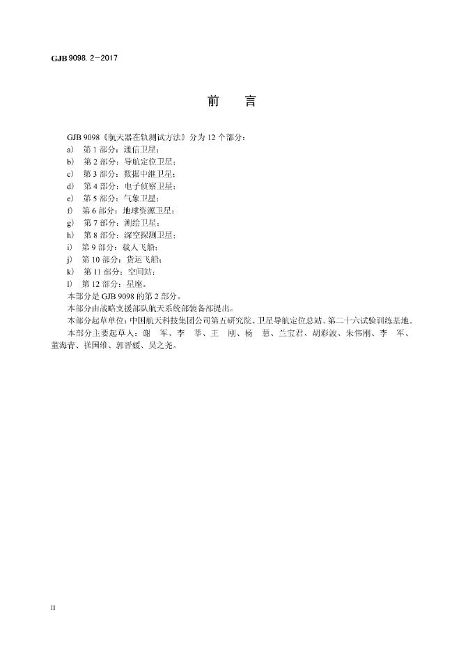 GJB 9098-2017 航天器在轨测试方法 第2部分:导航定位卫星