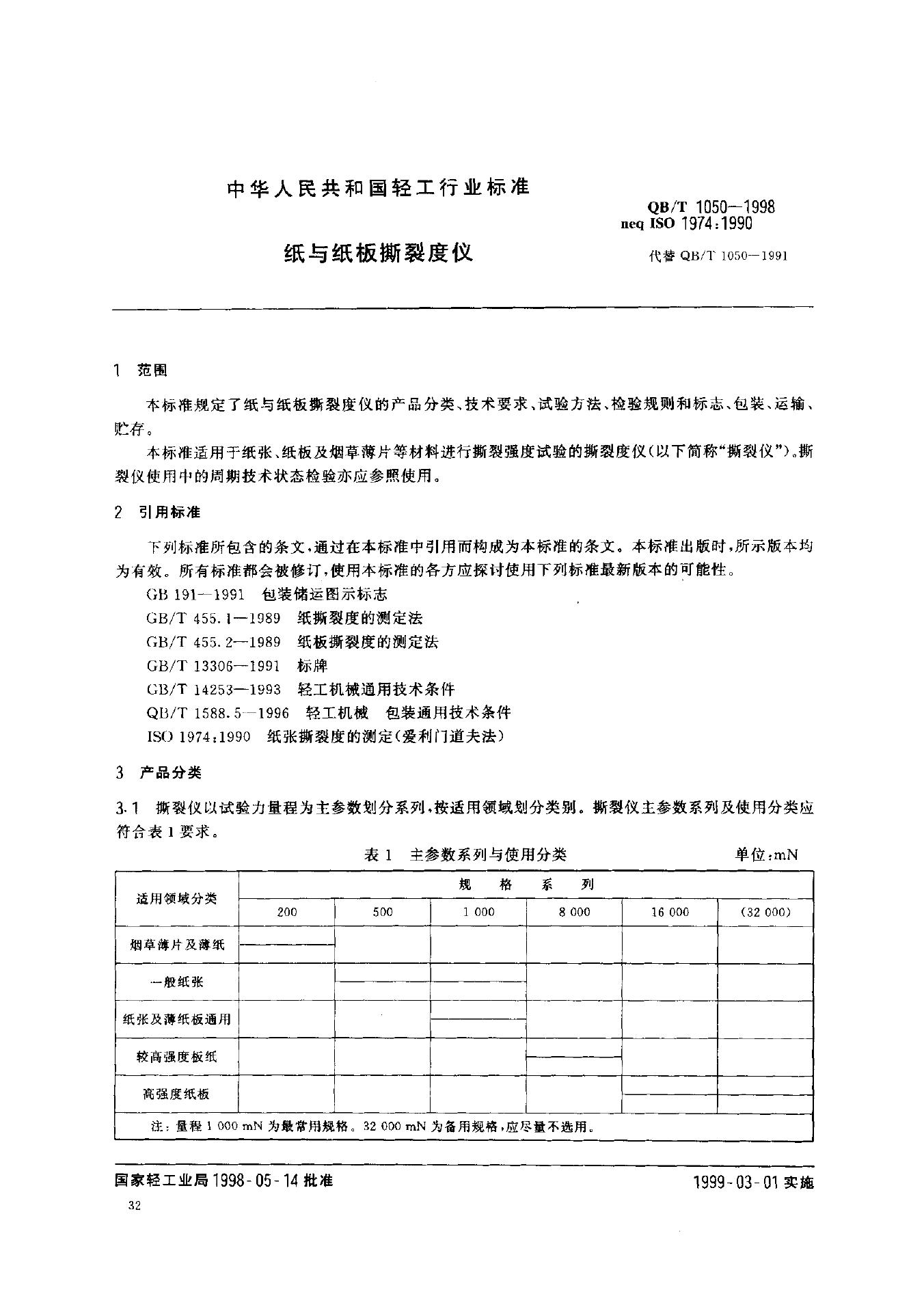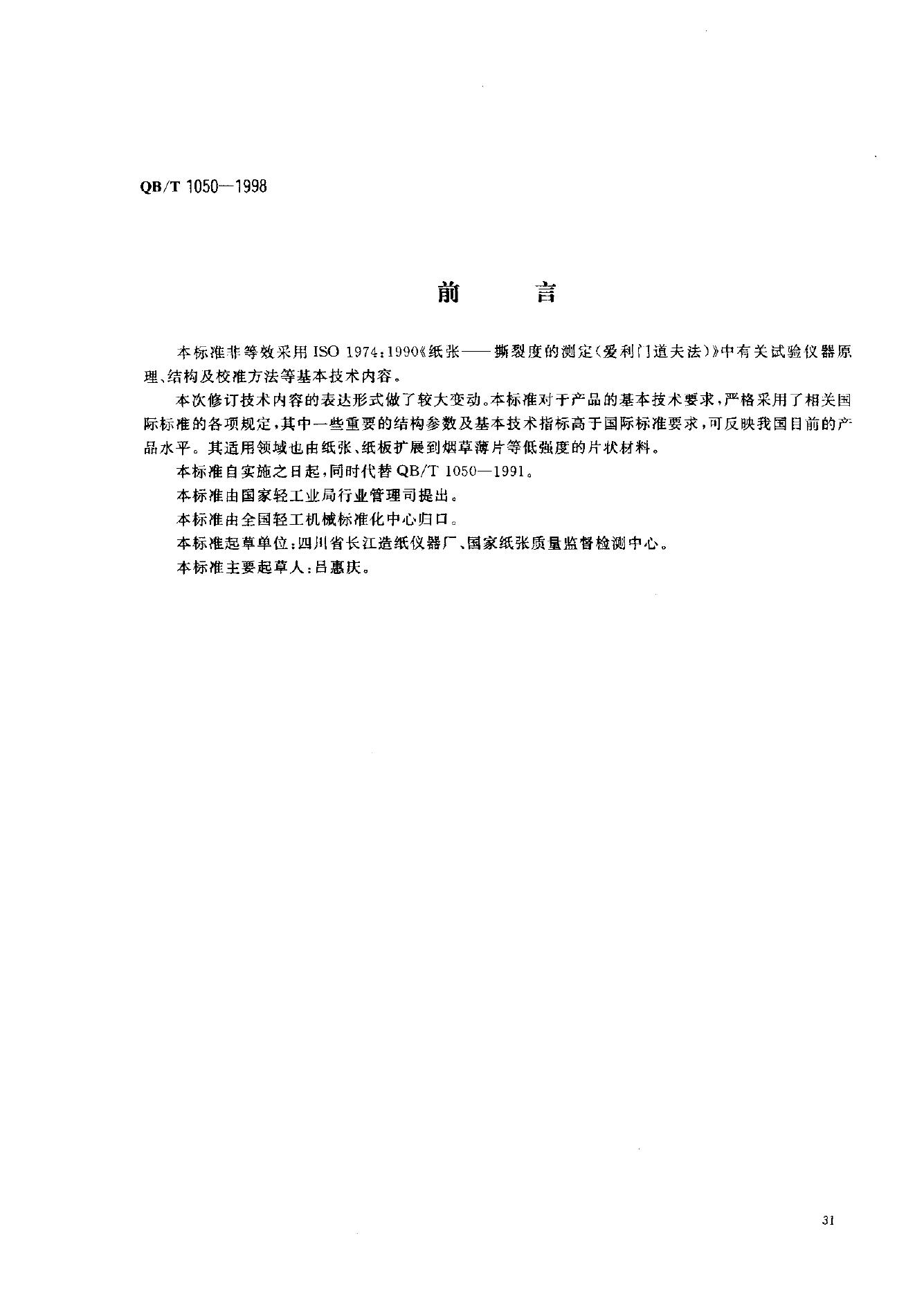QB 1050-1991 撕裂度测定仪