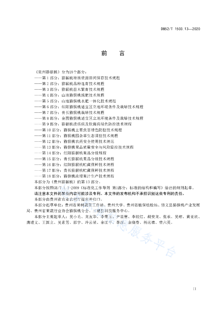 DB52/T 1503.13-2020 贵州猕猴桃 第13部分:猕猴桃果品质量安全与风险监控技术规程