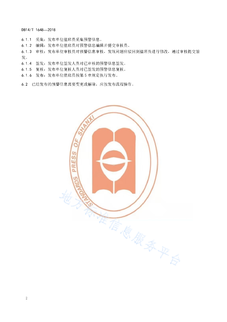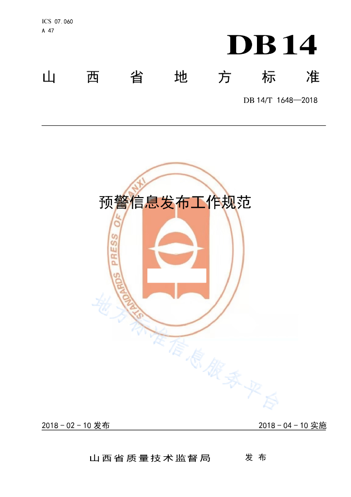 DB14/T 1648-2018 预警信息发布工作规范