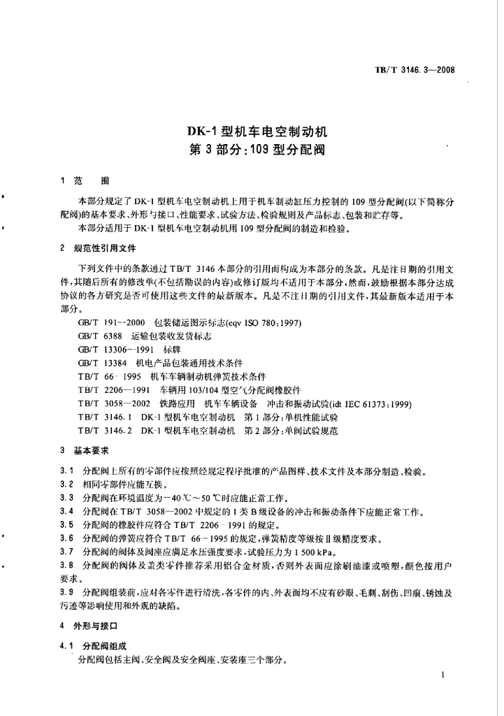 TB/T 3146.3-2008 DK-1型机车电空制动机 第3部分:109型分配阀