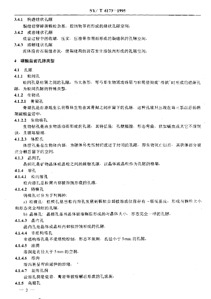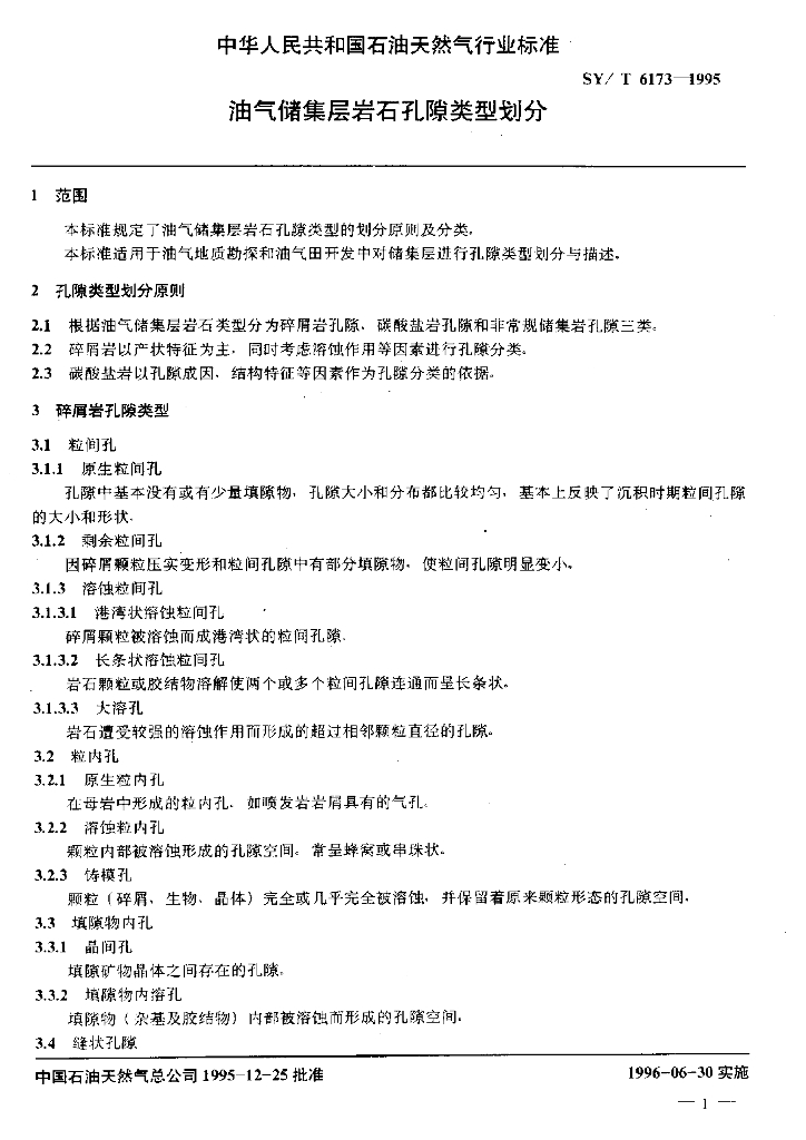 SY/T 6173-1995 油气储集层岩石孔隙类型划分