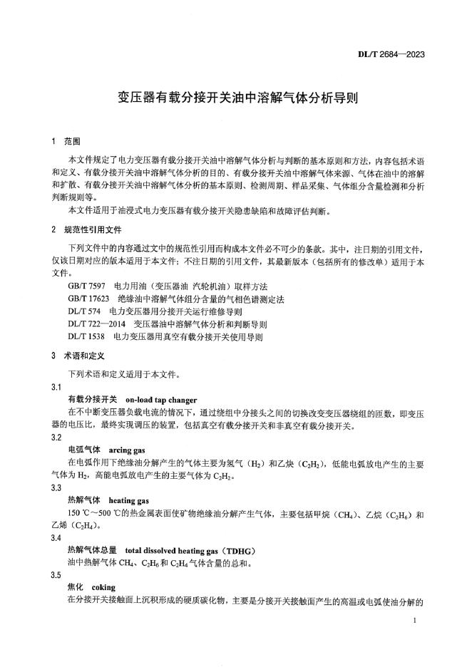 DL/T 2684-2023 变压器有载分接开关油中溶解气体分析导则
