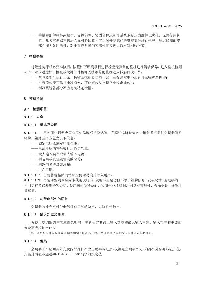 DB37/T 4993-2025 家用空调器再使用技术规范