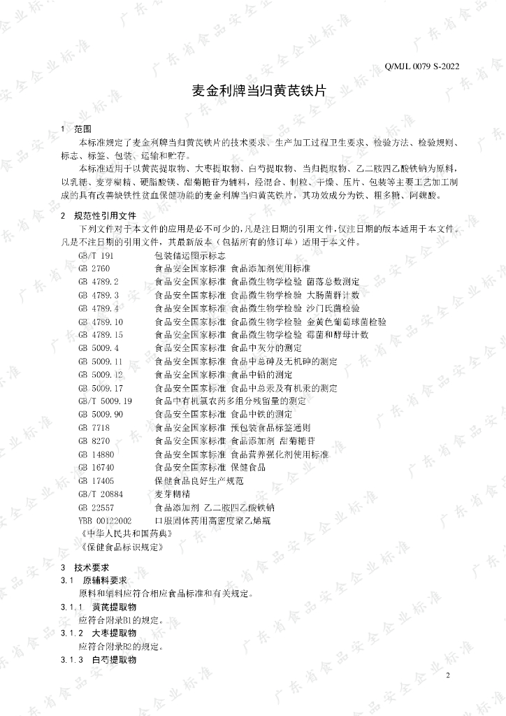 Q/MJL 0079S-2022 麦金利牌当归黄芪铁片