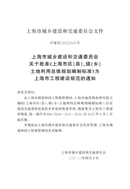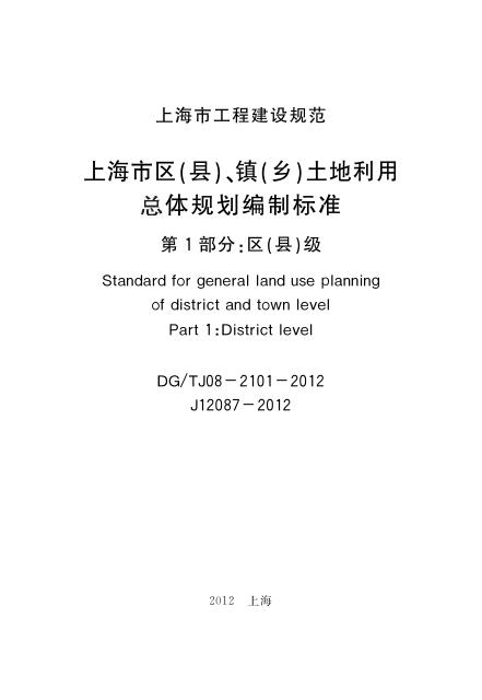 DG/TJ 08-2101-2012 上海市区(县)、镇(乡)土地利用总体规划编制标准