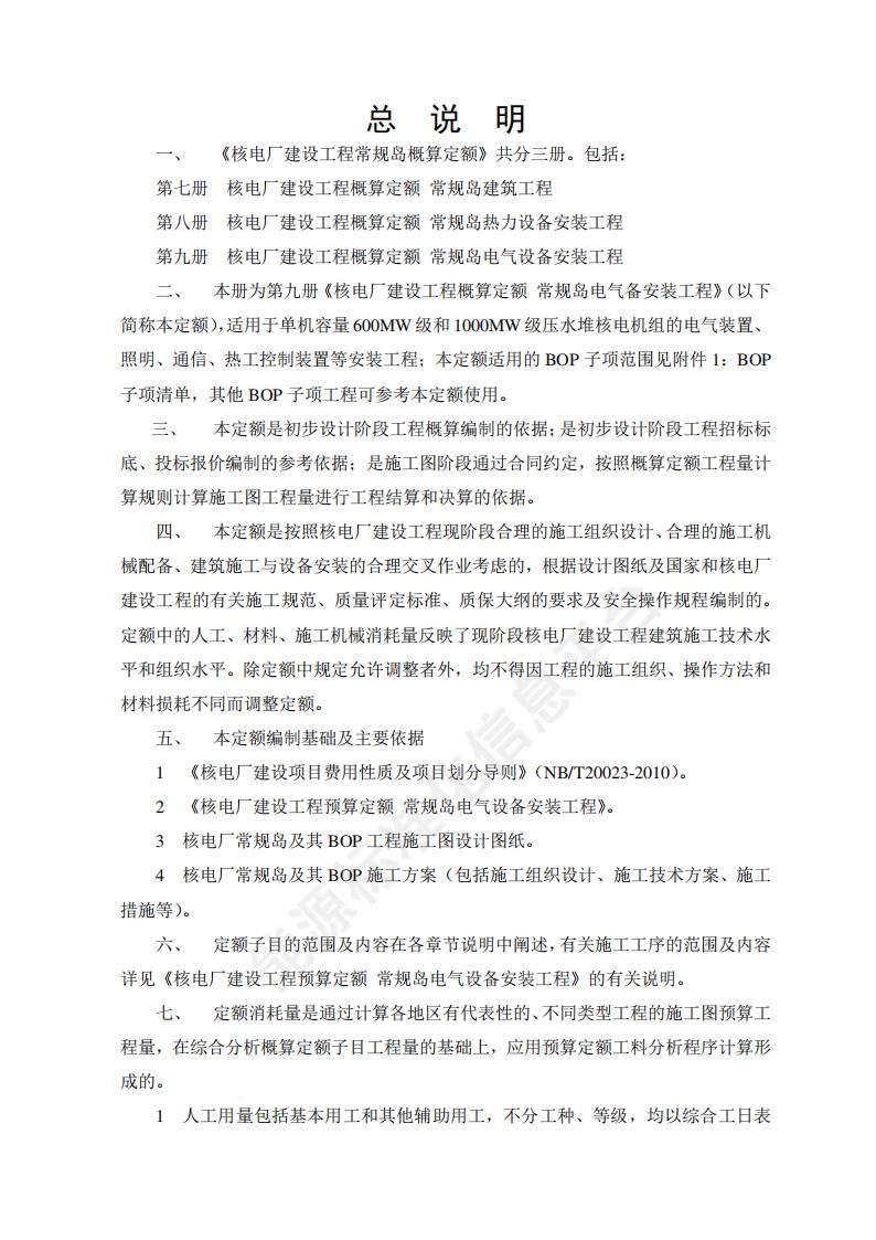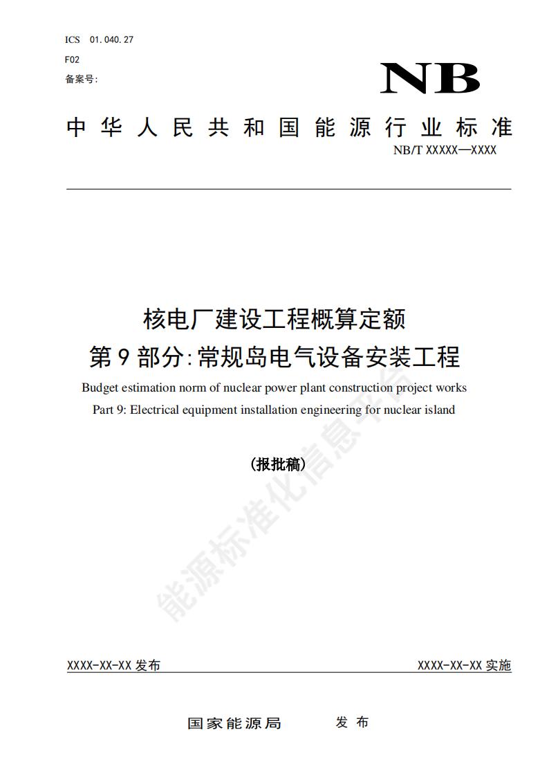 NB/T 20580.9-2021 核电厂建设工程概算定额 第9部分:常规岛电气设备安装工程(报批稿)