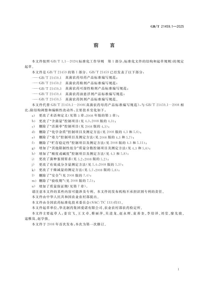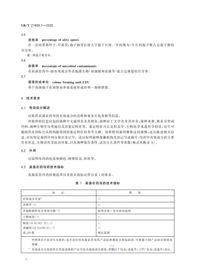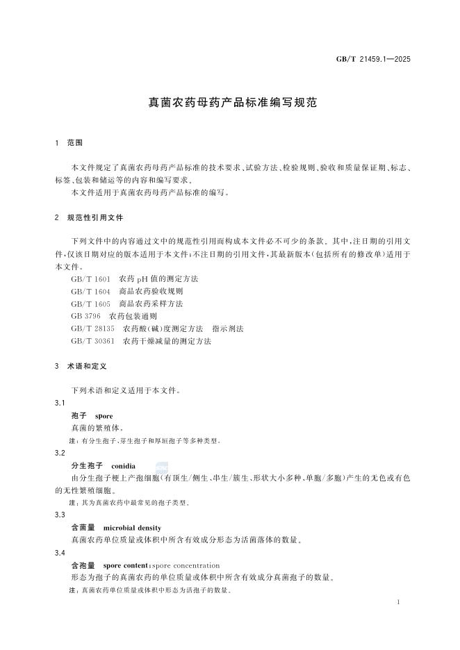 GB/T 21459.1-2025 真菌农药母药产品标准编写规范