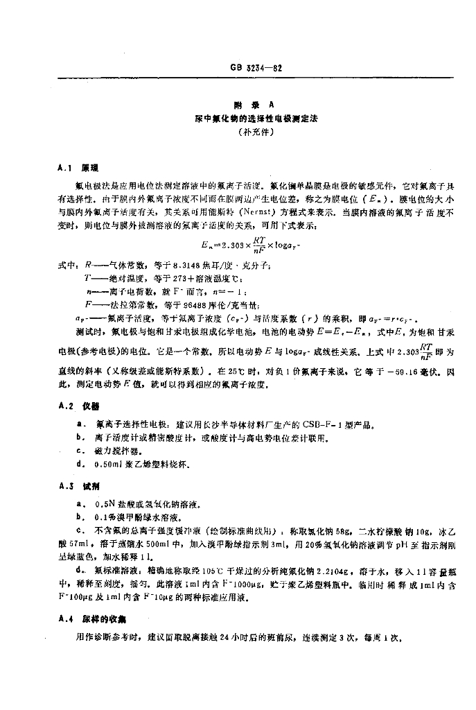 GB 3234-1982 工业性氟病诊断标准及处理原则