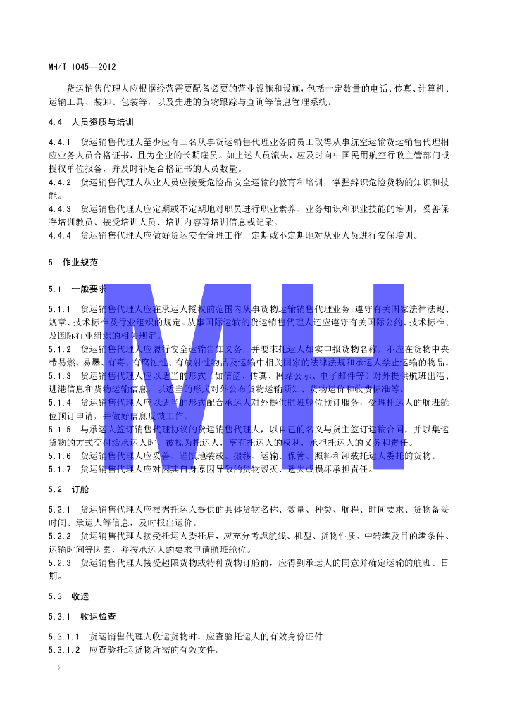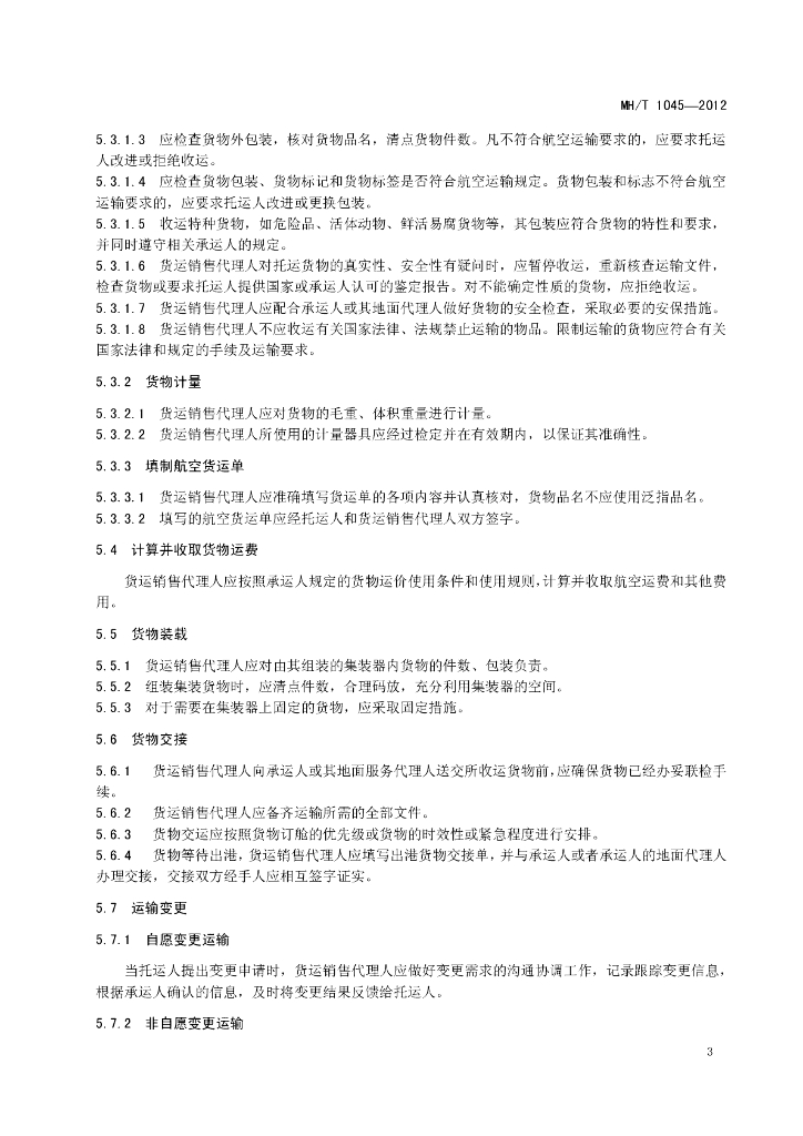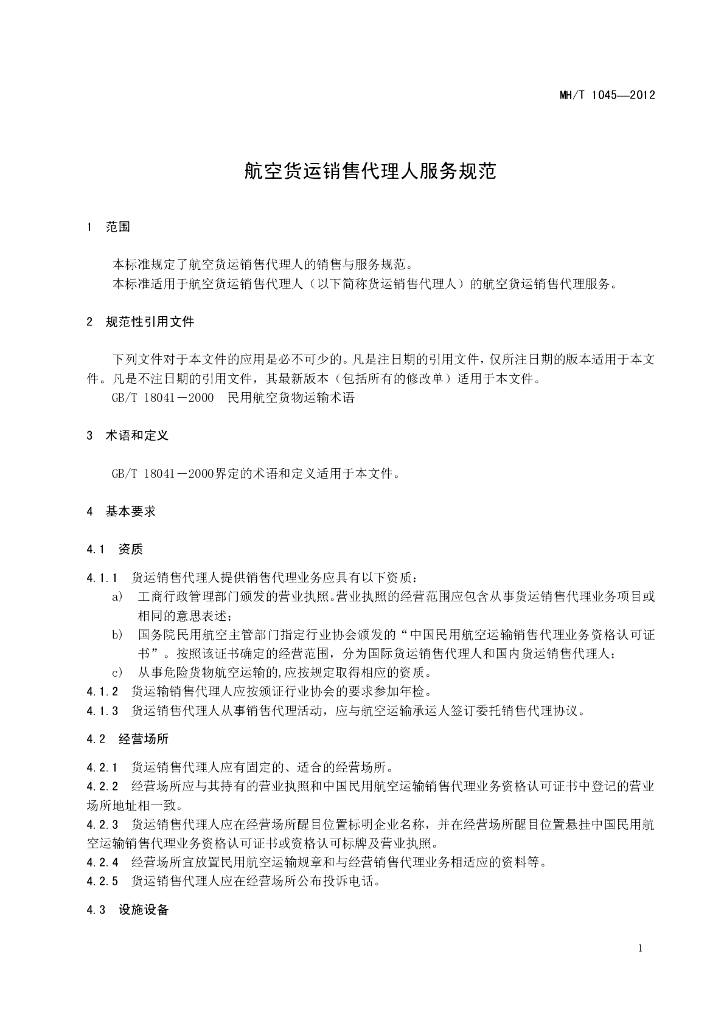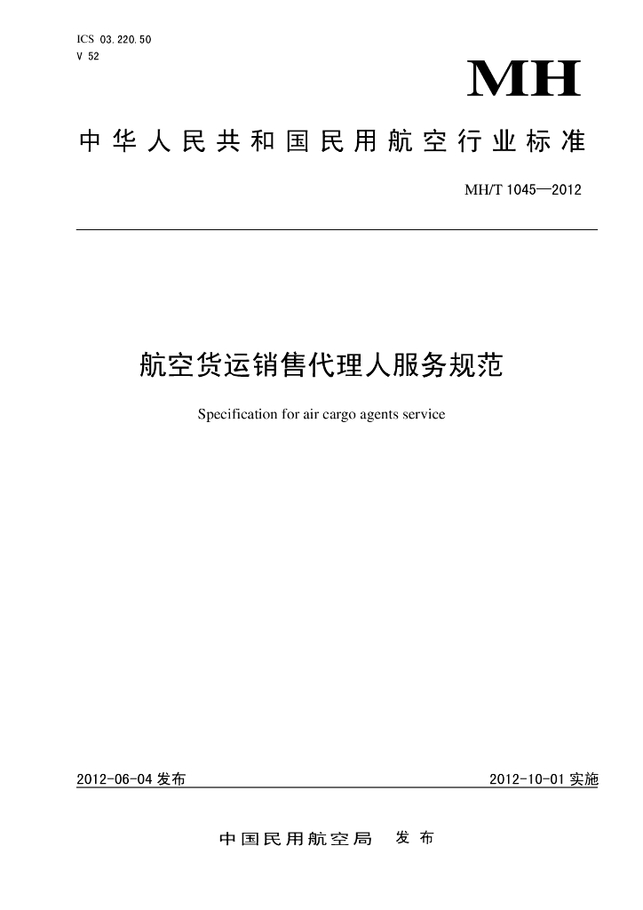 MH/T 1045-2012 航空货运销售代理人服务规范