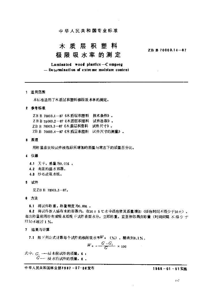 LY/T 1414-1999 木质层积塑料极限吸水率的测定
