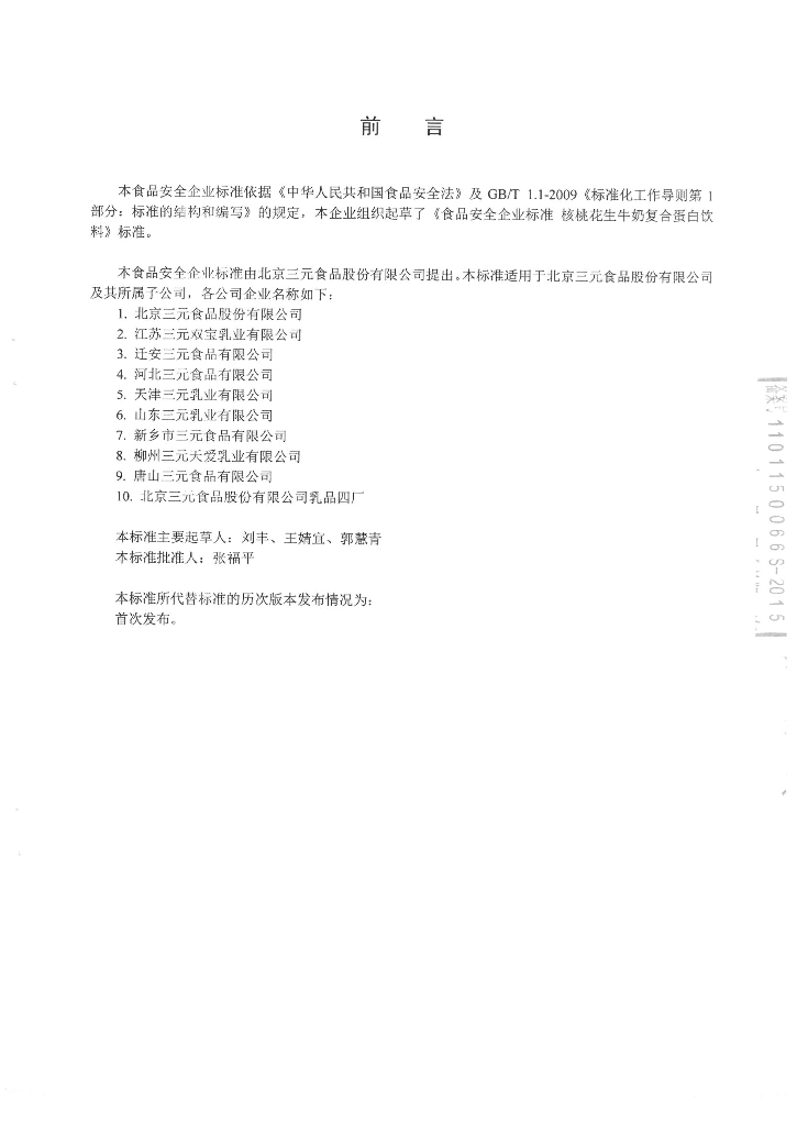 Q/DXSYR 0702-2015 北京三元食品控股有限公司 核桃花生牛奶复合蛋白饮料
