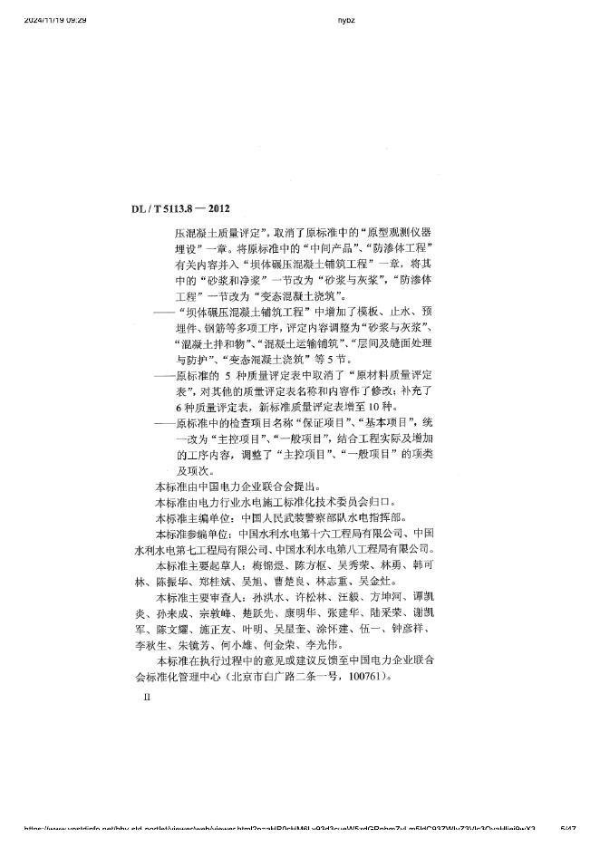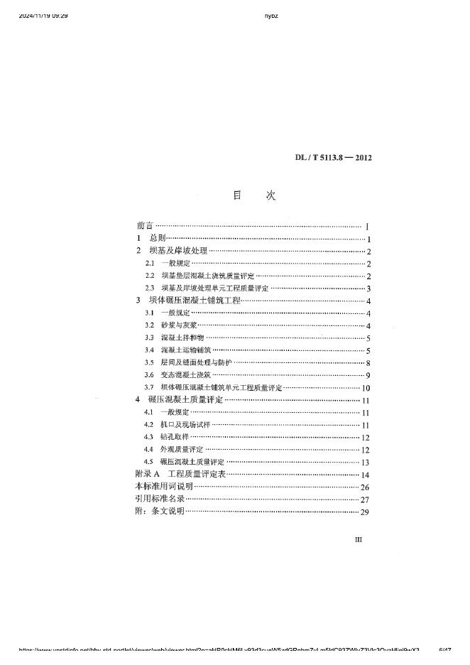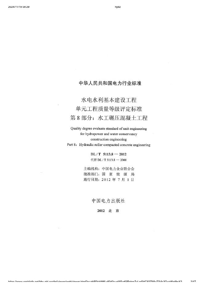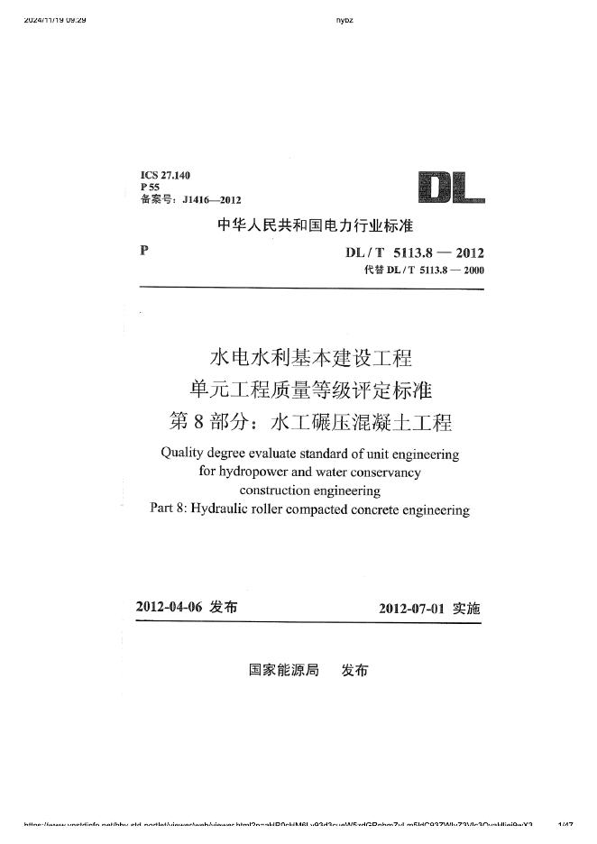 DL/T 5113.8-2012 水电水利基本建设工程 单元工程质量等级评定标准 第8部分:水工碾压混凝土工程(附条文说明)