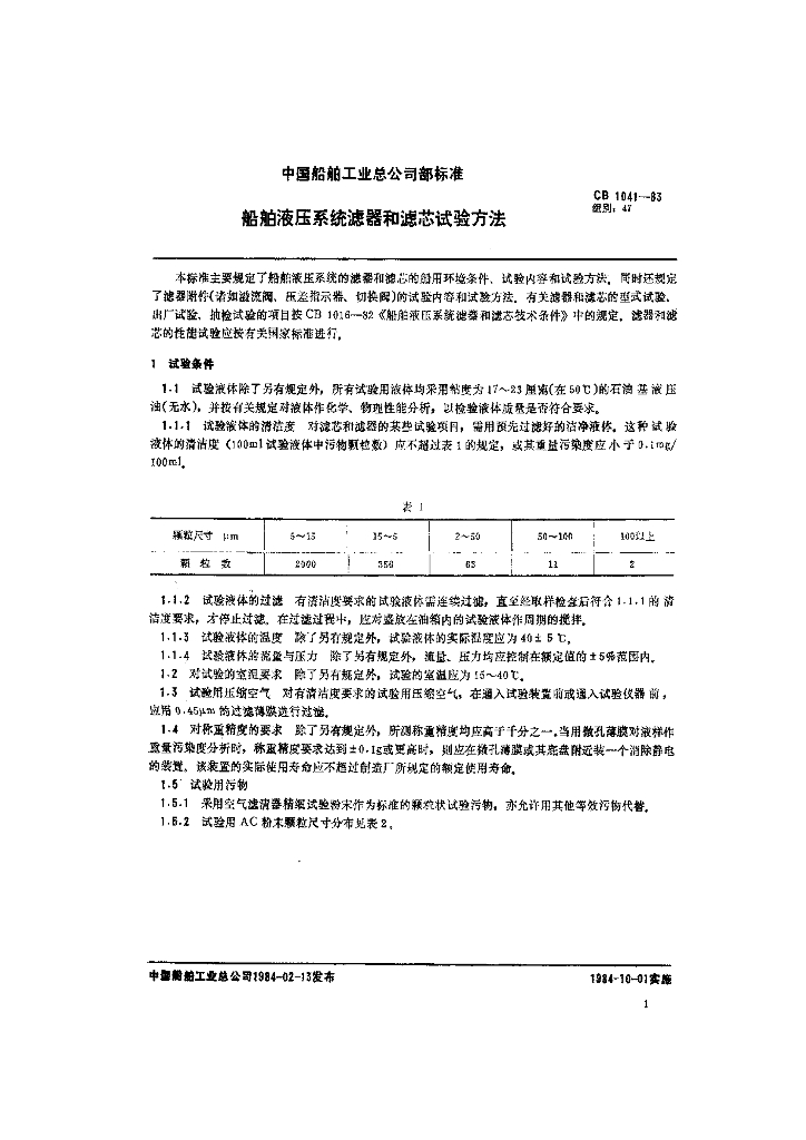 CB 1041-1983 船舶液压系统滤器和滤芯试验方法
