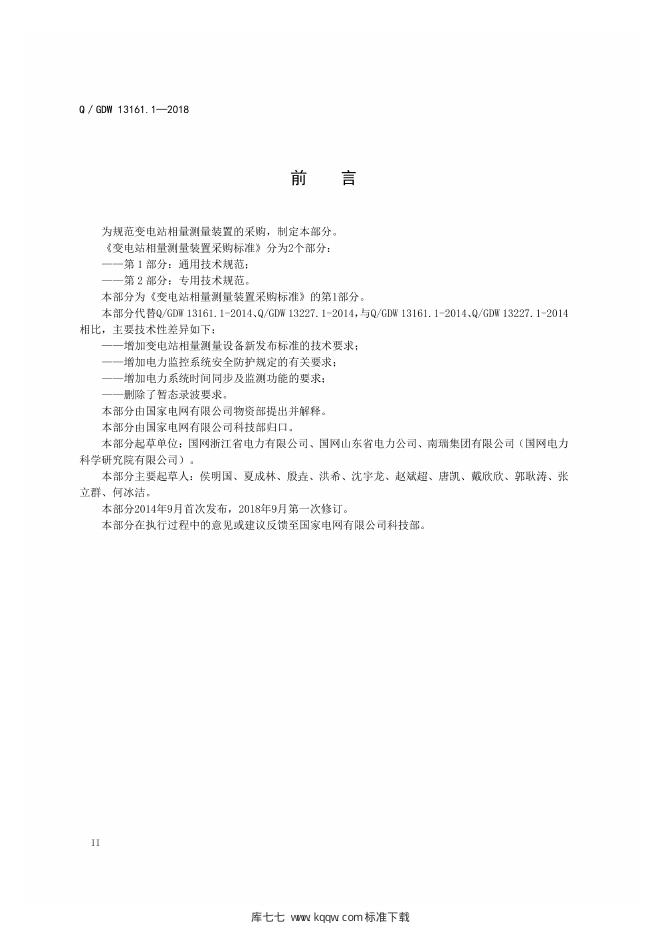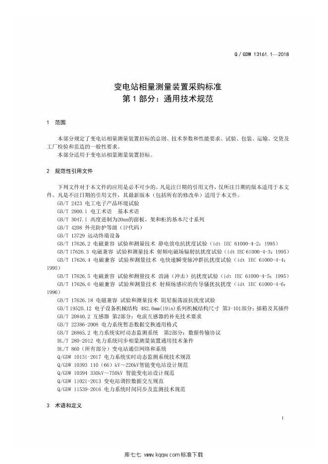 Q/GDW 13161.1-2018 变电站相量测量装置采购标准 第1部分:通用技术规范