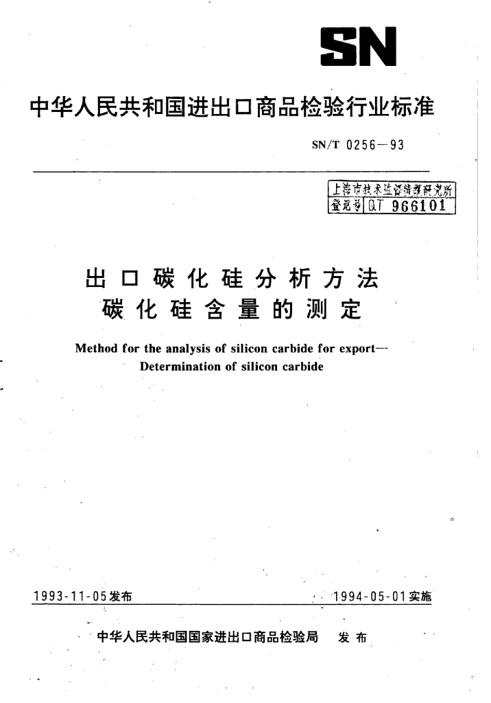 SN/T 0256-1993 出口碳化硅分析方法碳化硅含量的测定
