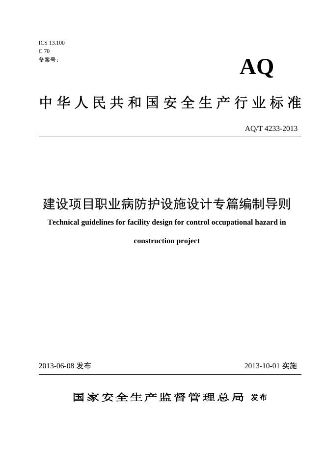 WS/T 882-2013 建设项目职业病防护设施设计专篇编制导则(原AQ/T 4233-2013)