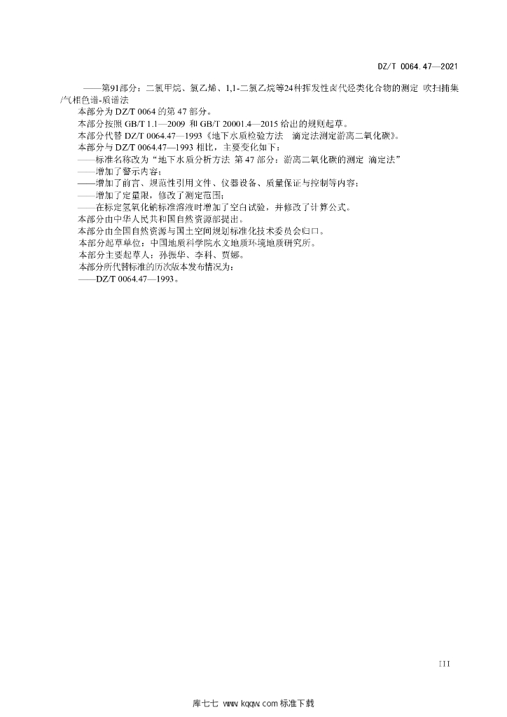 DZ/T 0064.47-2021 地下水质分析方法 第47部分:游离二氧化碳的测定 滴定法