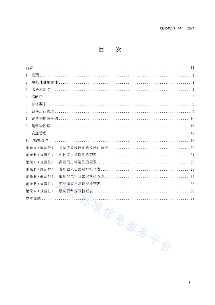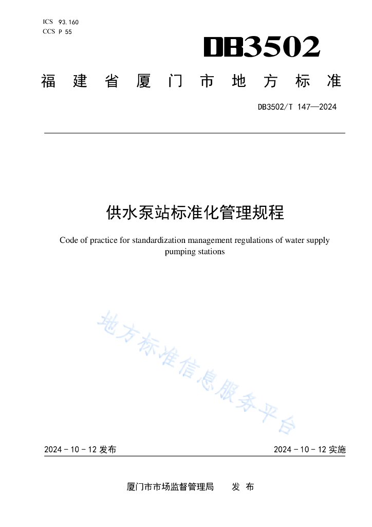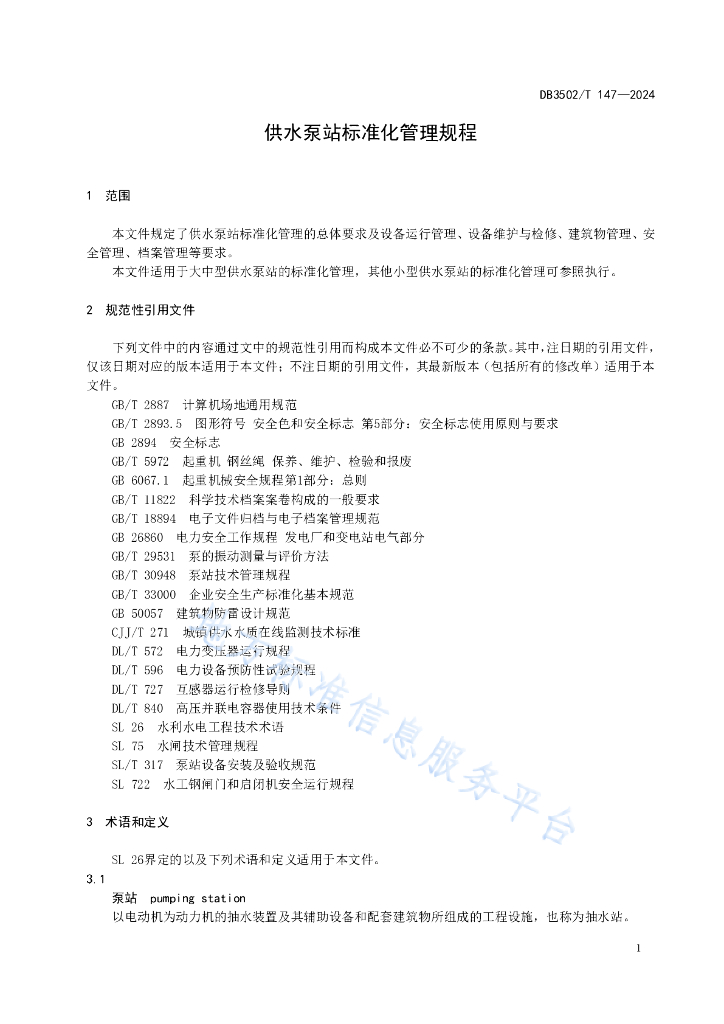 DB3502/T 147-2024 供水泵站标准化管理规程