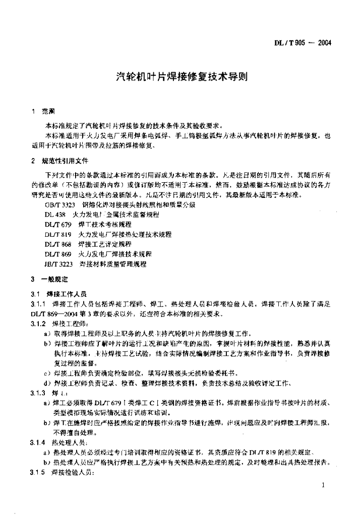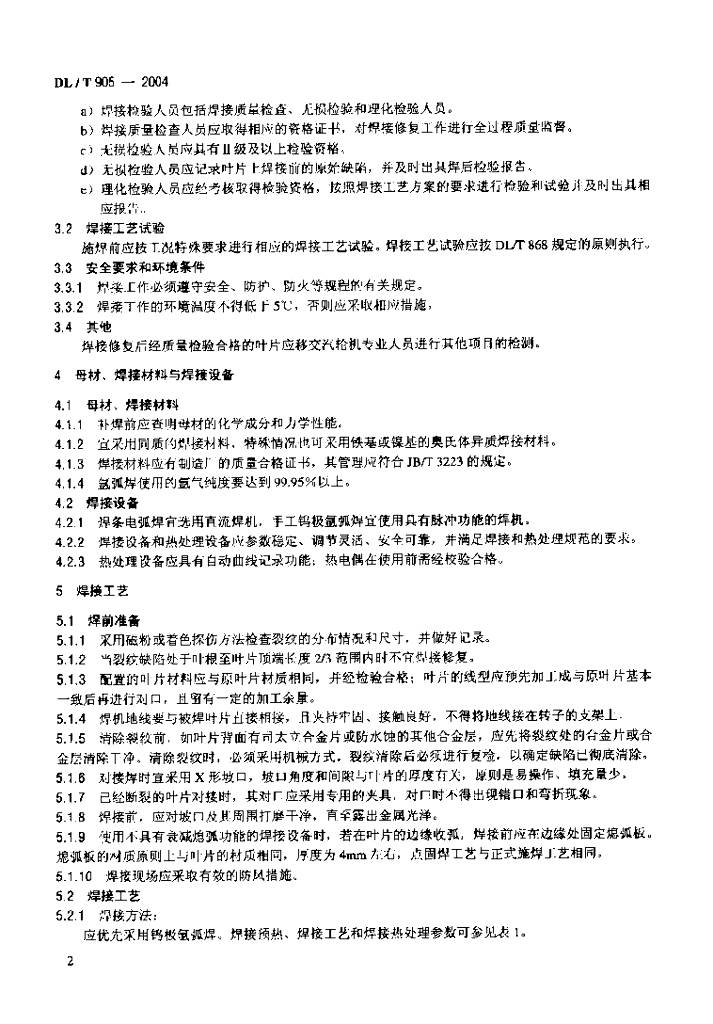 DL/T 905-2004 汽轮机叶片焊接修复技术导则