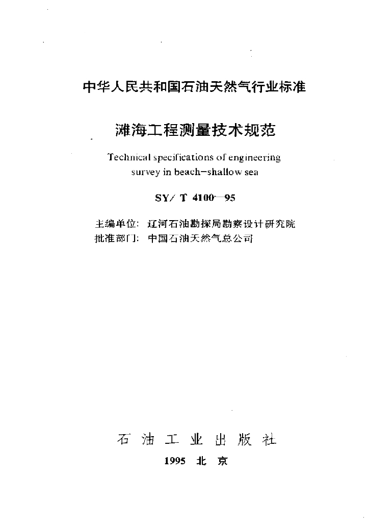 SY/T 4100-1995 滩海工程测量技术规范