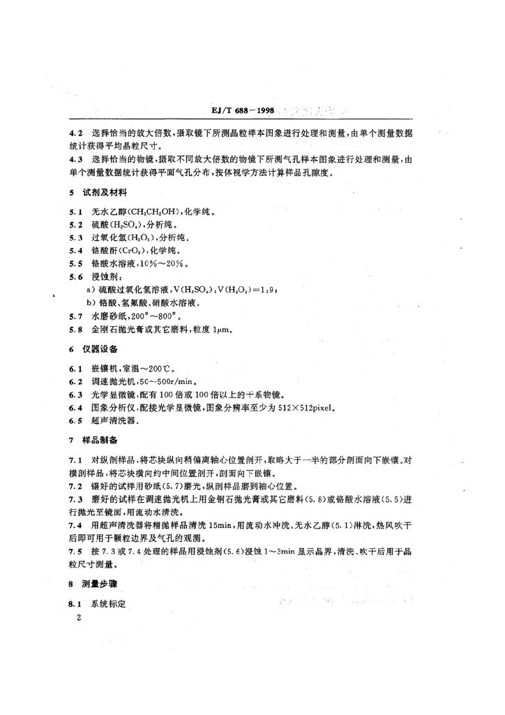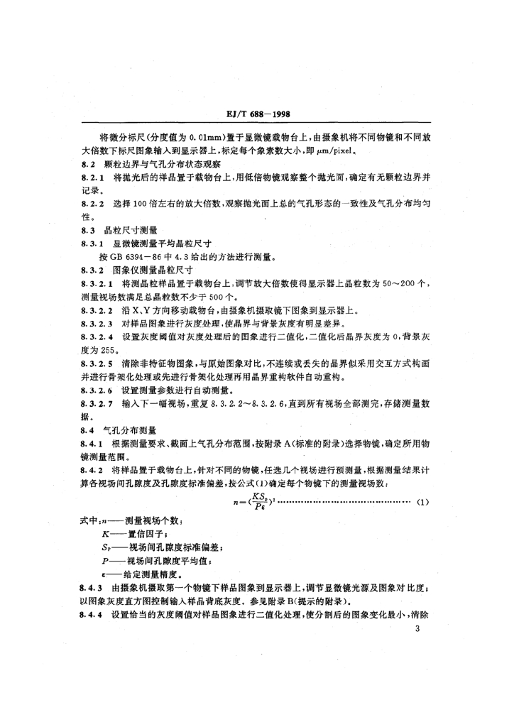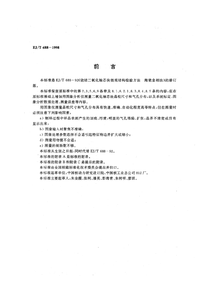 EJ/T 688-1998 烧结二氧化铀芯块微观结构检验方法