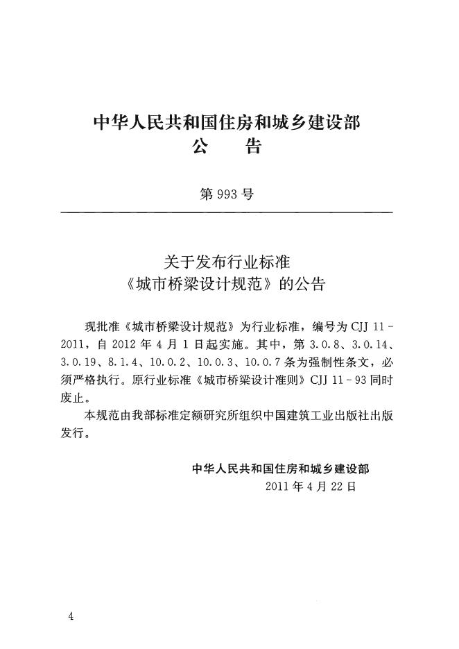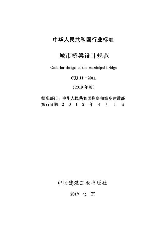 CJJ 11-2011(2019年版) 城市桥梁设计规范