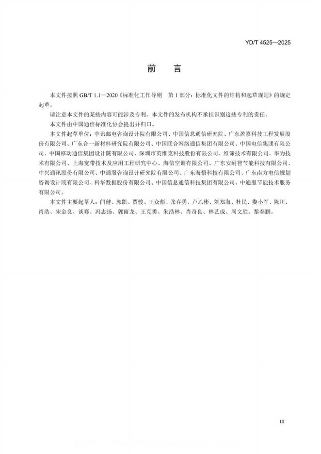 中讯邮电咨询设计院有限公司、中国信息通信研究院、广东盈嘉科技工程发展股份有限公司、广东合一新材料研究院有限公司、中国联合网络通信集团有限公司、中国电信集团有限公司、中国移动通信集团设计院有限公司、深圳市英维克科技股份有限公司、维谛技术有限公司、华为技术有限公司、上海宽带技术及应用工程研究中心、海信空调有限公司、广东安耐智节能科技有限公司、中兴通讯股份有限公司、中通服咨询设计研究院有限公司、广东海悟科技有限公司、广东南方电信规划咨询设计院有限公司、科华数据股份有限公司、中国信息通信科技集团有限公司、中通服节