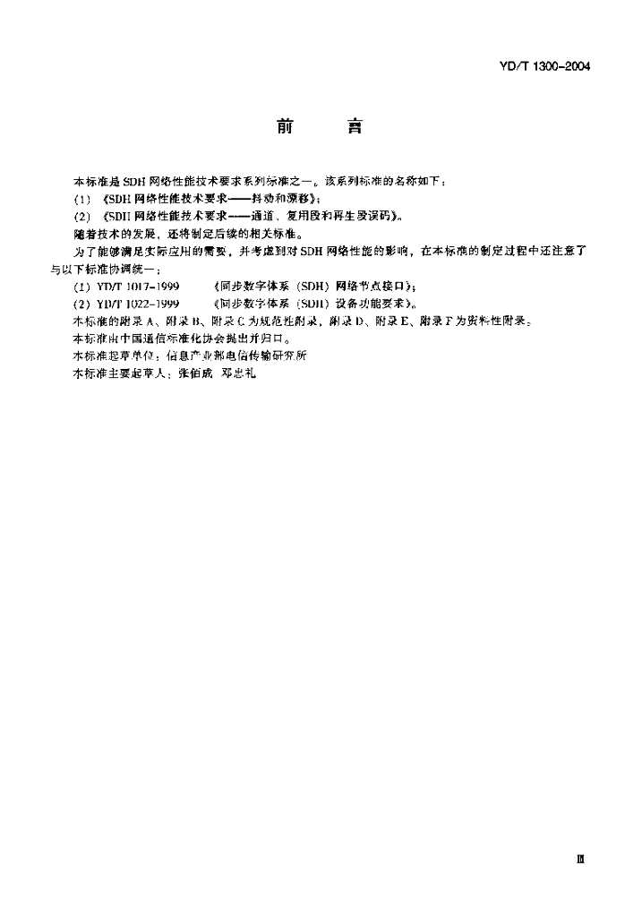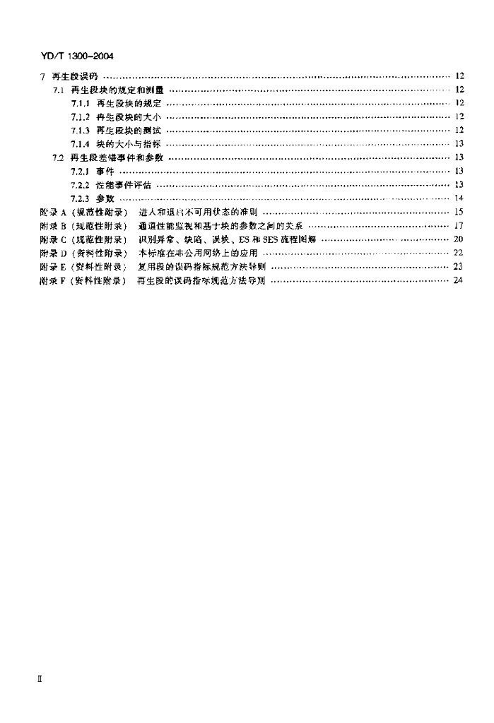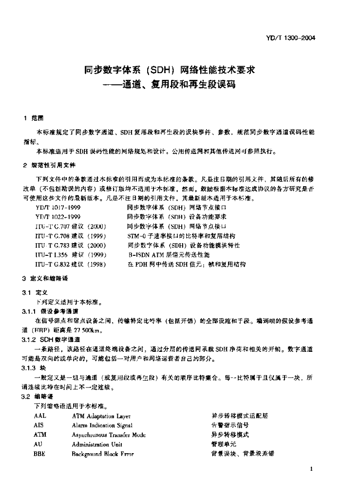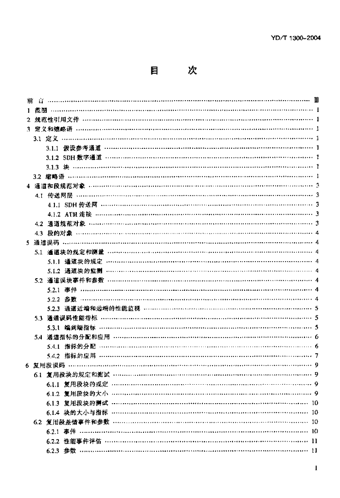 YD/T 1300-2004 同步数字体系(SDH)网络性能技术要求——通道、 复用段和再生段误码