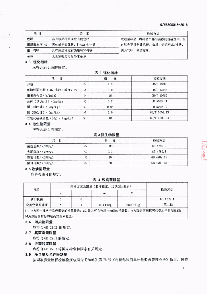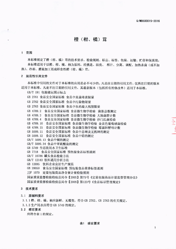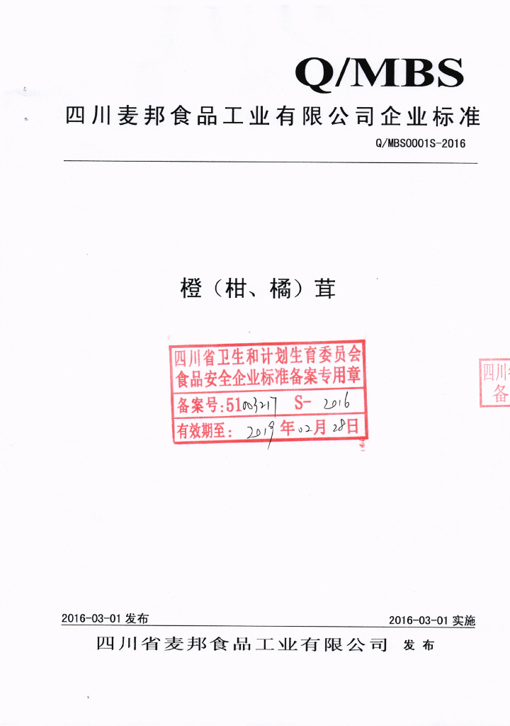 Q/MBS 0001S-2016 四川省麦邦食品工业有限公司 橙(柑、橘)茸