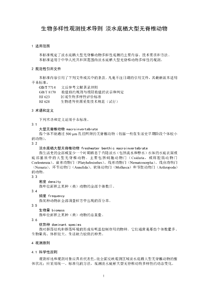 HJ 710.8-2014 生物多样性观测技术导则 淡水底栖大型无脊椎动物