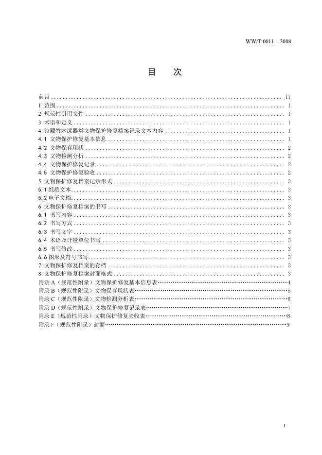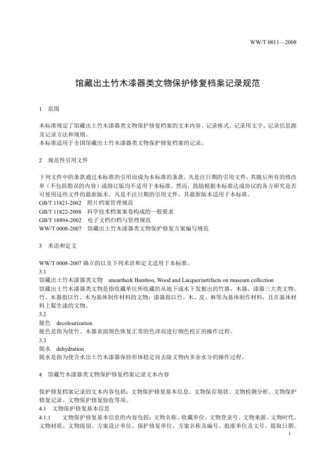 WW/T 0011-2008 馆藏出土竹木漆器类文物保护修复档案记录规范